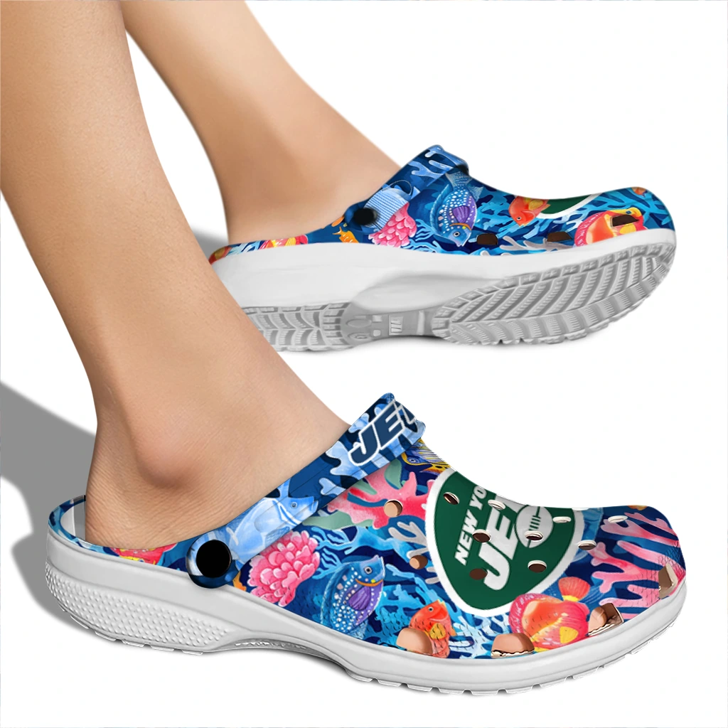 Show your spirit with the ultimate comfort clog! The All-Star Spirit Comfort Clogs – New York Jets Ocean Wonders Clogs are designed to keep pace with your active life while showcasing your love for the game. We've combined featherlight EVA material with bold, team-inspired color patterns! These clogs are a home run for versatility, offering slip-on ease, breezy comfort, and a vibrant look that travels effortlessly from the stadium parking lot to your sofa. What an easy way to cheer on your team!