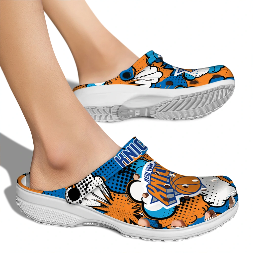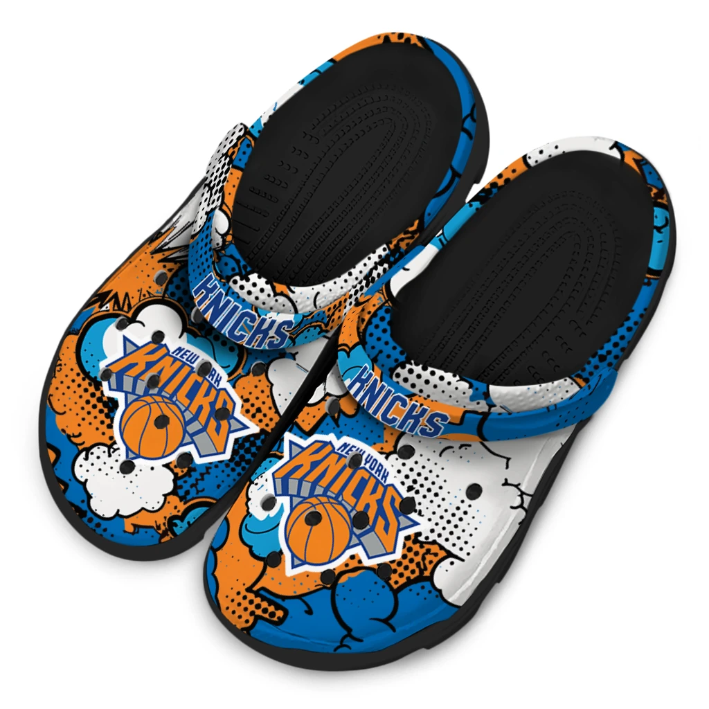 Show your spirit with the ultimate comfort clog! The All-Star Spirit Comfort Clogs – New York Knicks Cloud Splash Clogs are designed to keep pace with your active life while showcasing your love for the game. We've combined featherlight EVA material with bold, team-inspired color patterns! These clogs are a home run for versatility, offering slip-on ease, breezy comfort, and a vibrant look that travels effortlessly from the stadium parking lot to your sofa. What an easy way to cheer on your team!