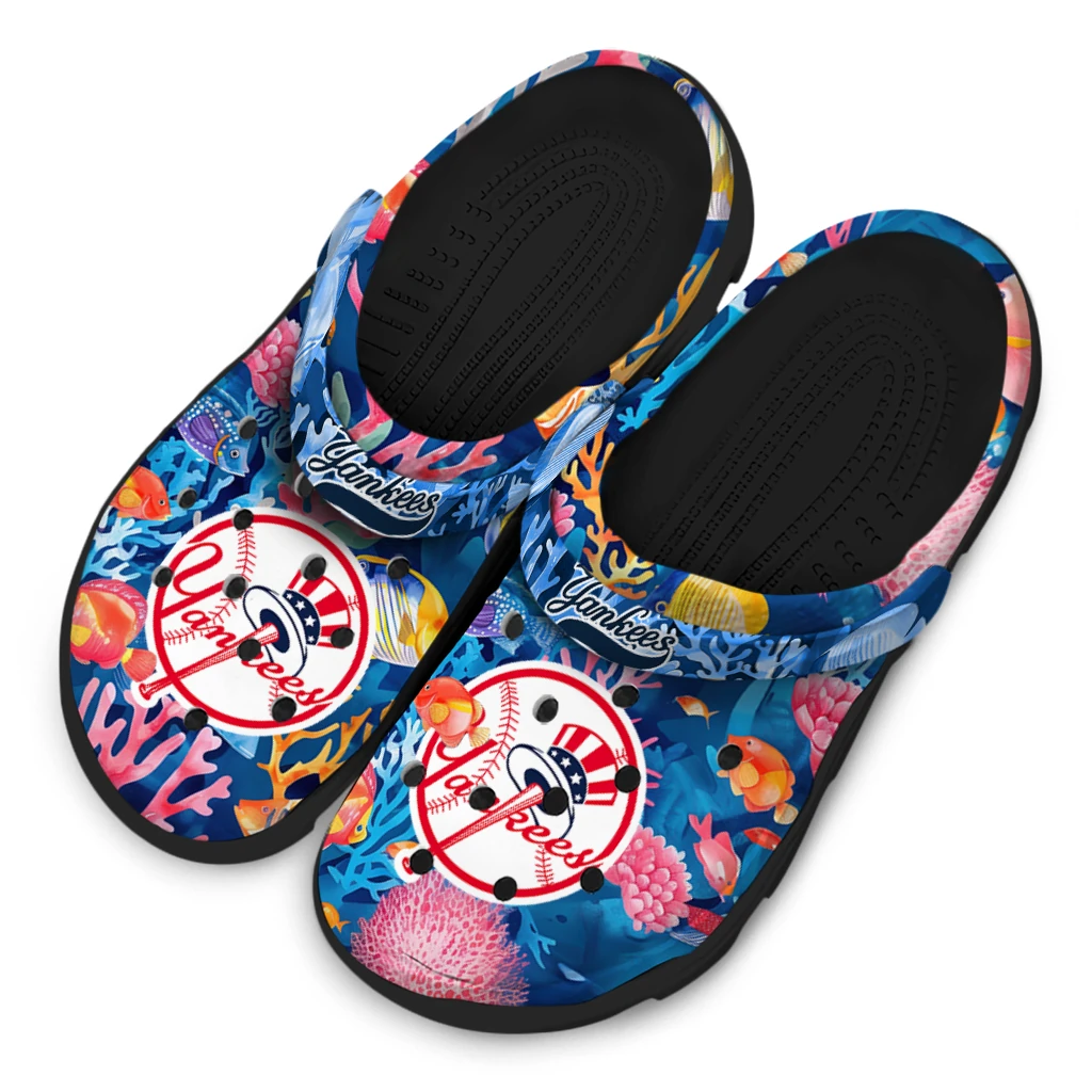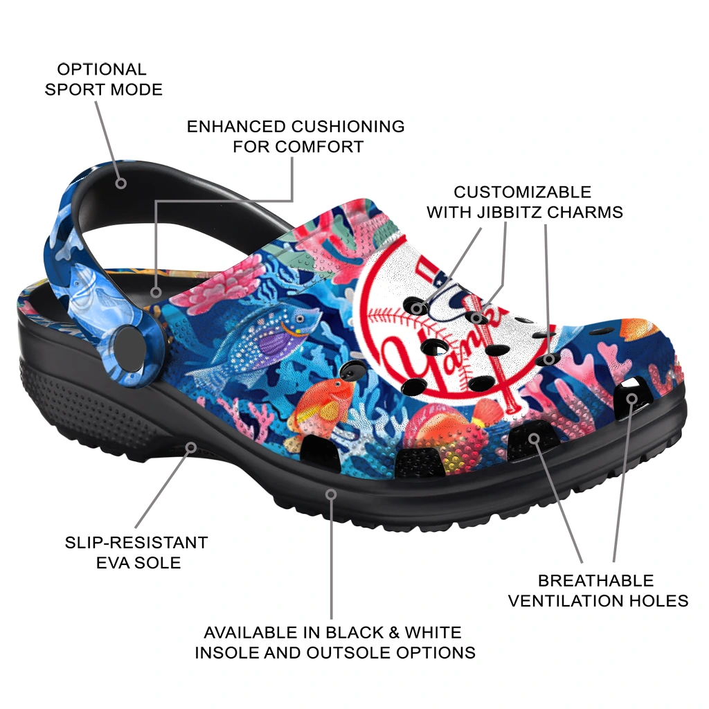 Show your spirit with the ultimate comfort clog! The All-Star Spirit Comfort Clogs – New York Yankees Ocean Wonders Clogs are designed to keep pace with your active life while showcasing your love for the game. We've combined featherlight EVA material with bold, team-inspired color patterns! These clogs are a home run for versatility, offering slip-on ease, breezy comfort, and a vibrant look that travels effortlessly from the stadium parking lot to your sofa. What an easy way to cheer on your team!