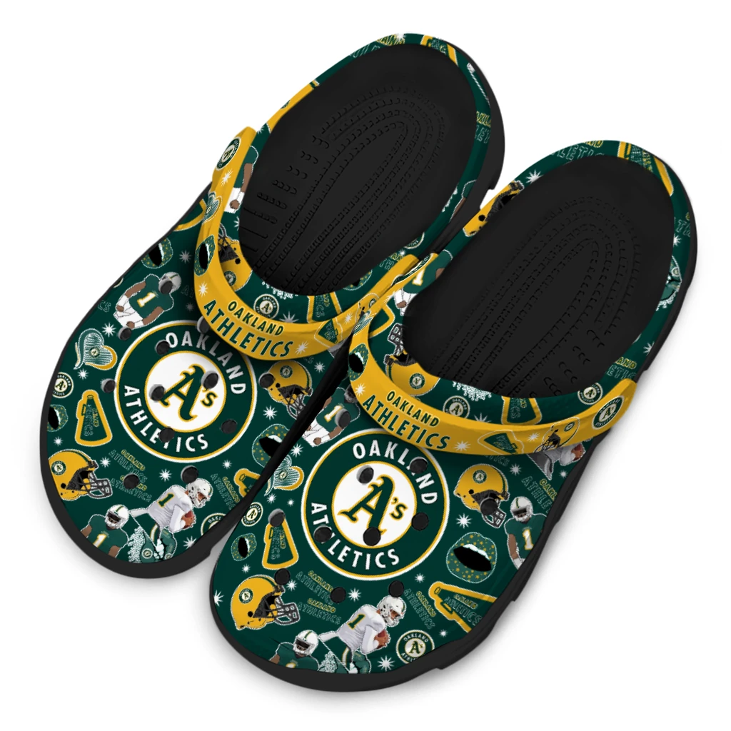 Show your spirit with the ultimate comfort clog! The All-Star Spirit Comfort Clogs – Oakland Athletics Football Icons Clogs are designed to keep pace with your active life while showcasing your love for the game. We’ve combined featherlight EVA material with bold, team-inspired color patterns! These clogs are a home run for versatility, offering slip-on ease, breezy comfort, and a vibrant look that travels effortlessly from the stadium parking lot to your sofa. What an easy way to cheer on your team!