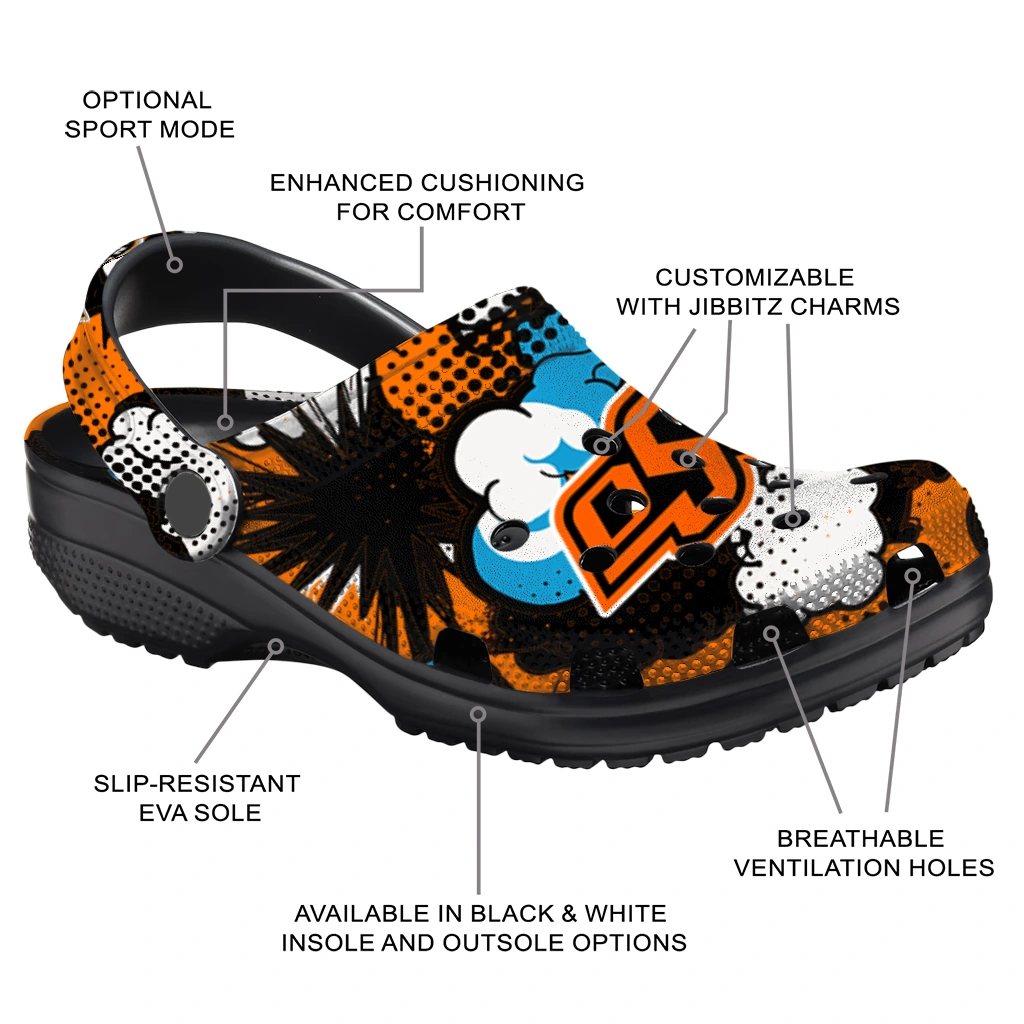 Show your spirit with the ultimate comfort clog! The All-Star Spirit Comfort Clogs – Oklahoma State Cowboys Cloud Splash Clogs are designed to keep pace with your active life while showcasing your love for the game. We've combined featherlight EVA material with bold, team-inspired color patterns! These clogs are a home run for versatility, offering slip-on ease, breezy comfort, and a vibrant look that travels effortlessly from the stadium parking lot to your sofa. What an easy way to cheer on your team!