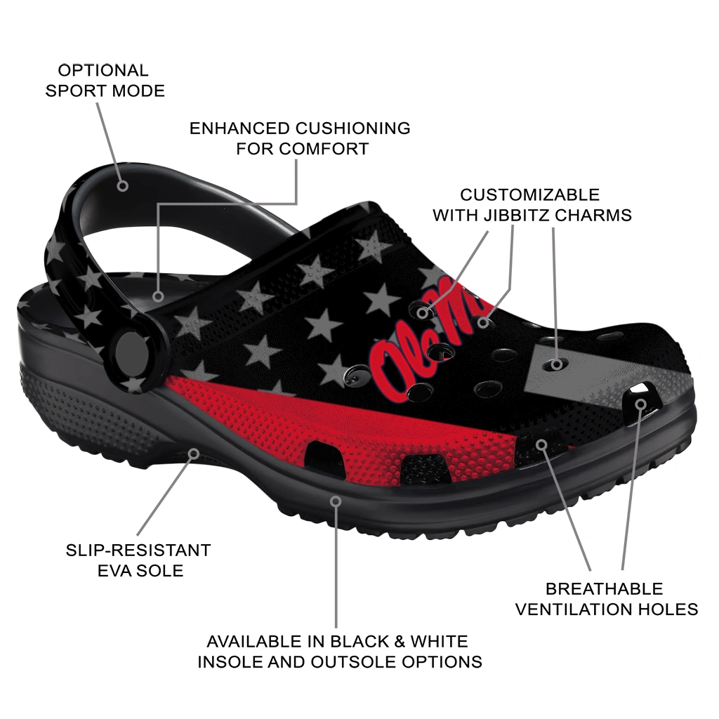Ole Miss Rebels Stellar Stripes Theme Clogs