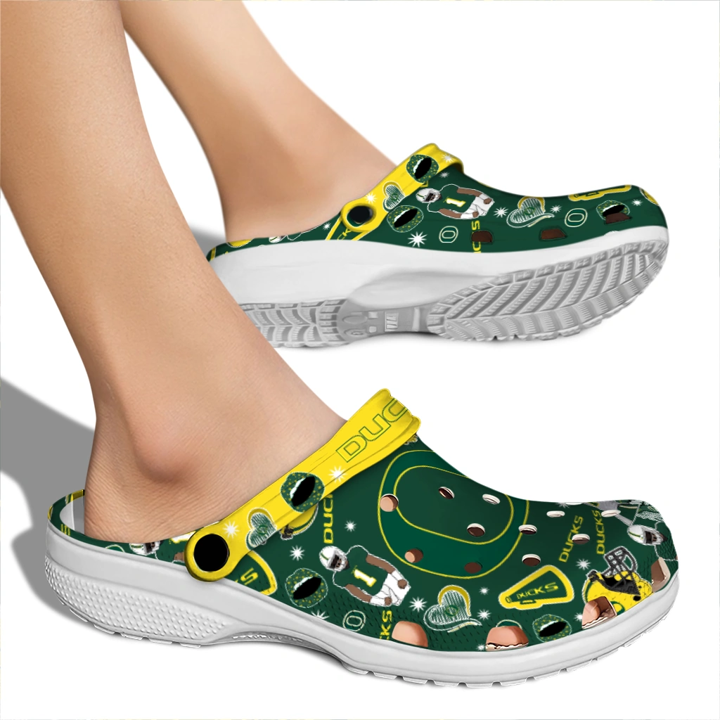 Comfort that Wins the Day! Can footwear truly be this comfortable and cool? Yes, they can! The All-Star Spirit Comfort Clogs – Oregon Ducks Football Icons Clogs deliver the cushiony feel your feet crave. Crafted from premium, durable EVA, they offer excellent support and shock absorption – perfect for those long days on your feet.
