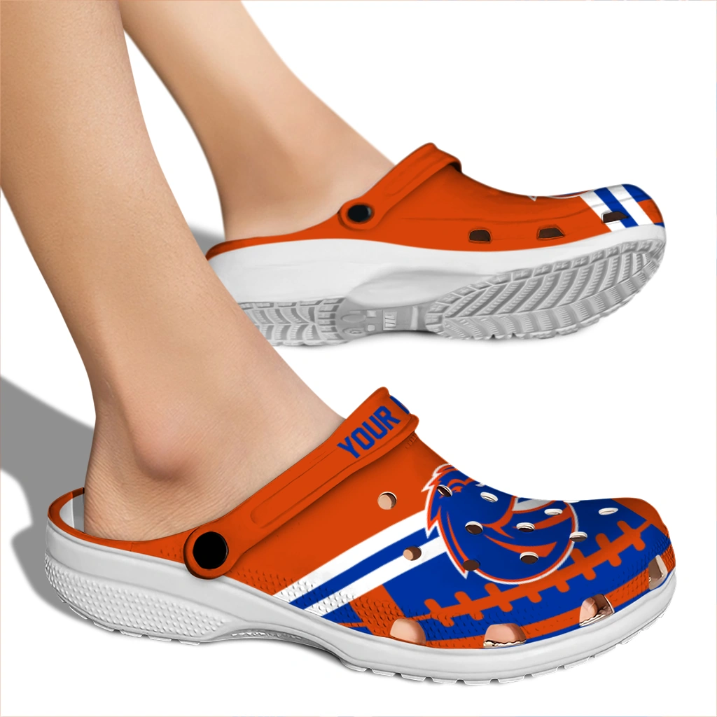 Your Clogs, Your Vibe, Your Name! Personalized Boise State Broncos Football Motif Clogs from Hey Clogs lets you take sport team-inspired style to a personal level! Featuring the bold colors you love, these featherlight clogs deliver unbeatable, all-day comfort. What a great way to make them truly yours: add your name to the heel strap! Perfect for gifting or treating yourself, these personalized clogs are a fun, spirited way to step out in comfort.