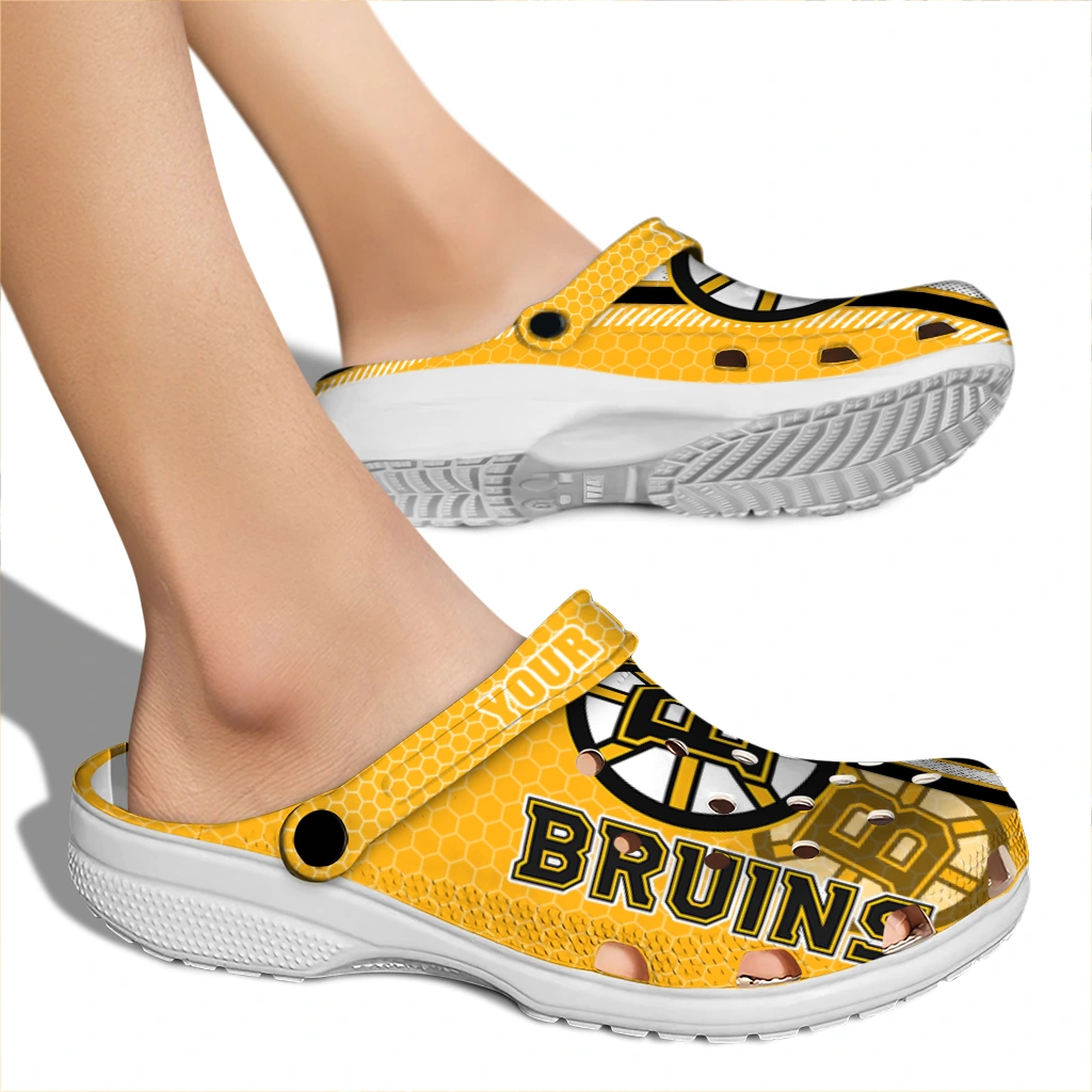 Personalized Boston Bruins Contrasting Stripes Clogs