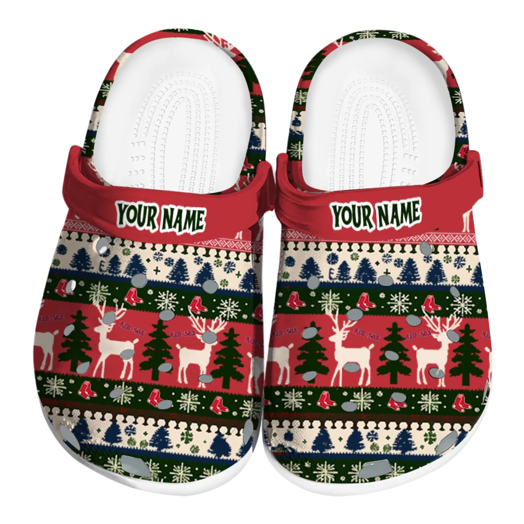 Your Clogs, Your Vibe, Your Name! Personalized Boston Red Sox Christmas Motif Clogs from Hey Clogs lets you take sport team-inspired style to a personal level! Featuring the bold colors you love, these featherlight clogs deliver unbeatable, all-day comfort. What a great way to make them truly yours: add your name to the heel strap! Perfect for gifting or treating yourself, these personalized clogs are a fun, spirited way to step out in comfort.