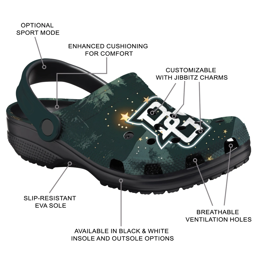 Your Clogs, Your Vibe, Your Name! Personalized Bowling Green Falcons Christmas Motif Clogs from Hey Clogs lets you take sport team-inspired style to a personal level! Featuring the bold colors you love, these featherlight clogs deliver unbeatable, all-day comfort. What a great way to make them truly yours: add your name to the heel strap! Perfect for gifting or treating yourself, these personalized clogs are a fun, spirited way to step out in comfort.
