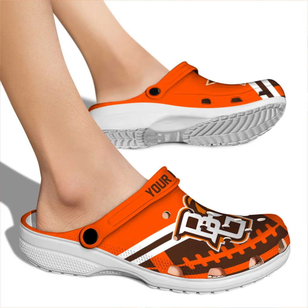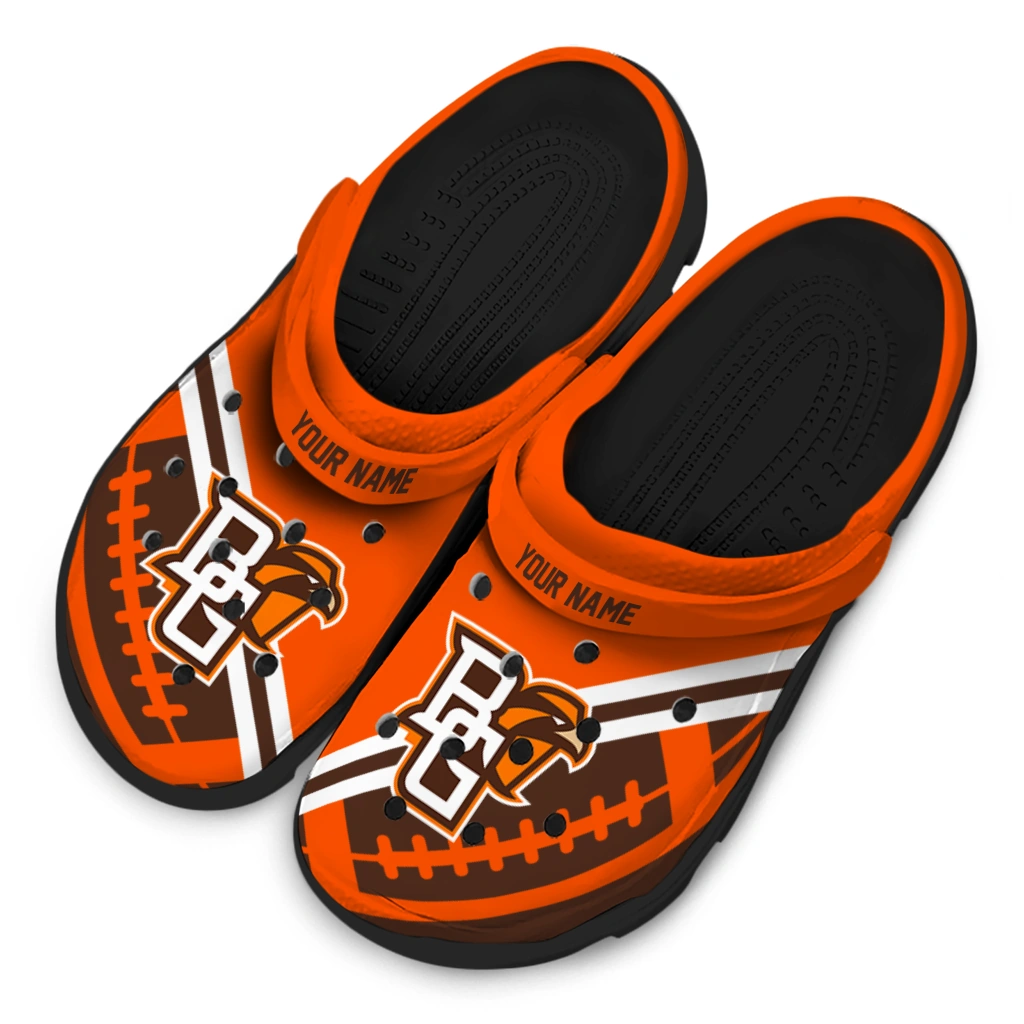 Your Clogs, Your Vibe, Your Name! Personalized Bowling Green Falcons Football Motif Clogs from Hey Clogs lets you take sport team-inspired style to a personal level! Featuring the bold colors you love, these featherlight clogs deliver unbeatable, all-day comfort. What a great way to make them truly yours: add your name to the heel strap! Perfect for gifting or treating yourself, these personalized clogs are a fun, spirited way to step out in comfort.