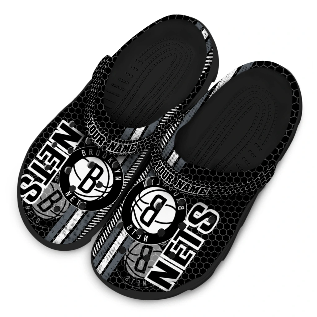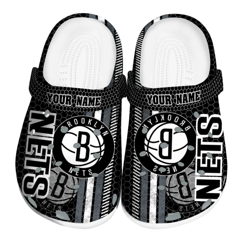 Personalized Brooklyn Nets Contrasting Stripes Clogs