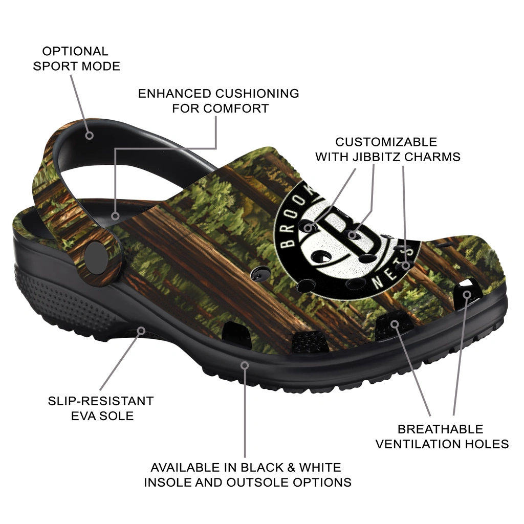Personalized Brooklyn Nets Woods Forest Designs Clogs