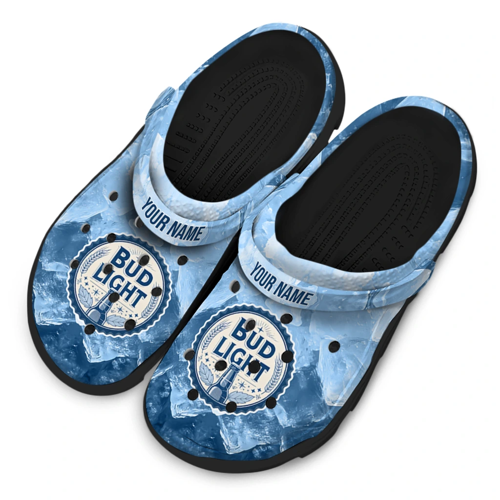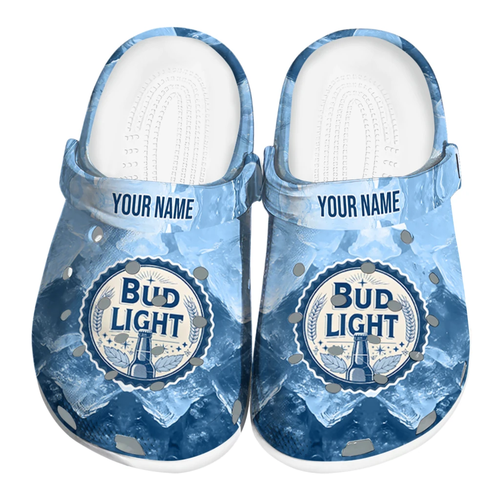 Personalized Bud light Logo Frost Blue White Clogs
