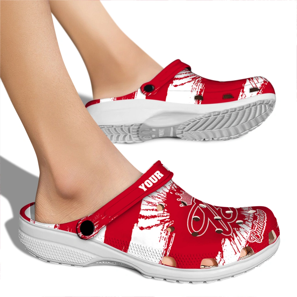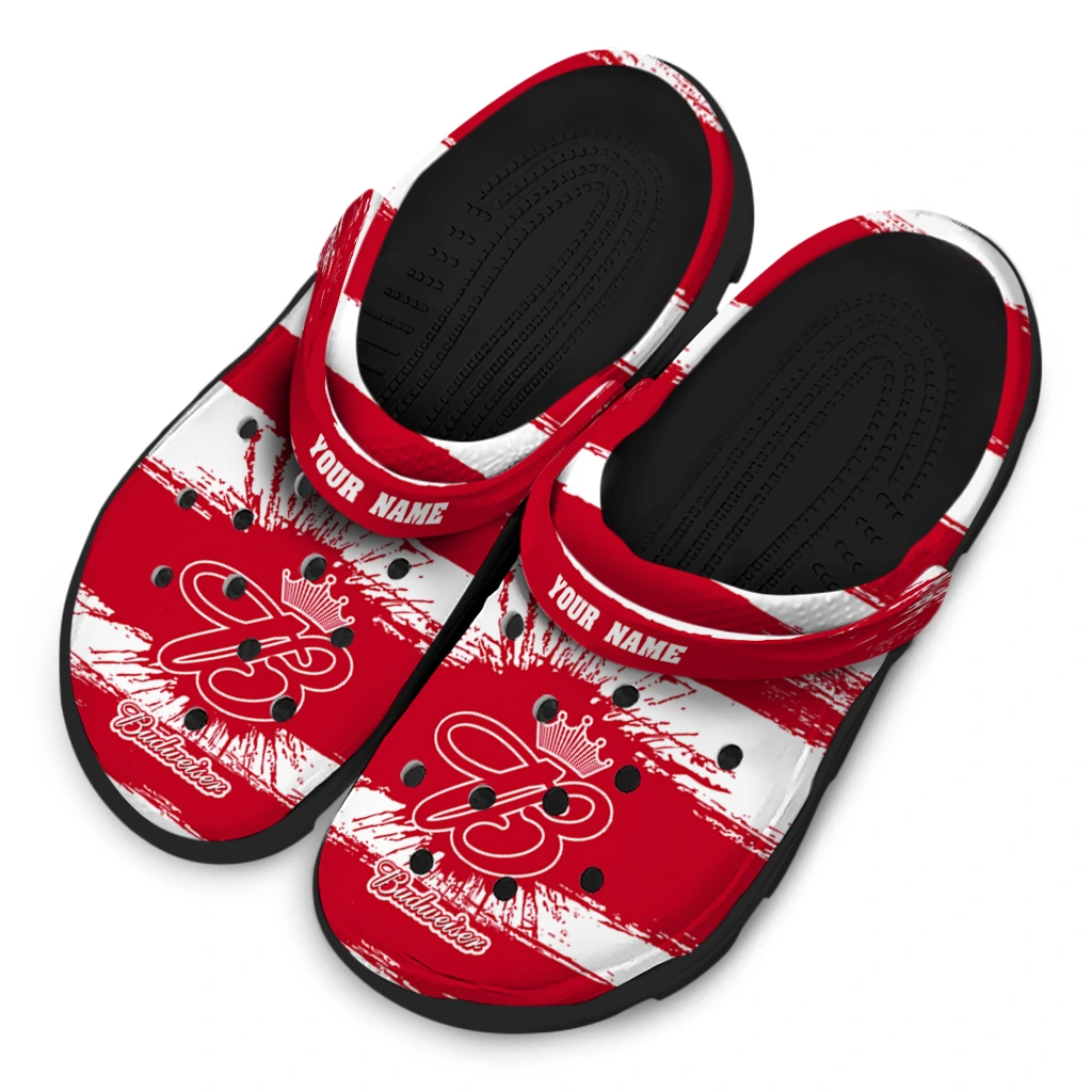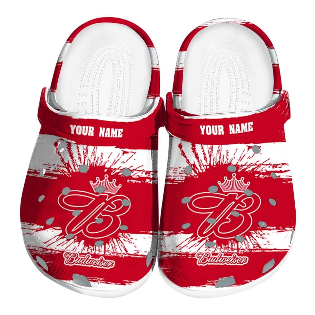 Personalized Budweiser Brush Stripes Red White Clogs