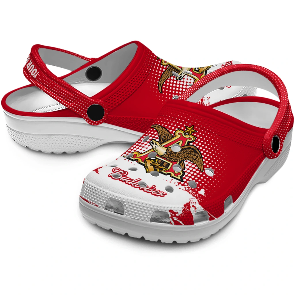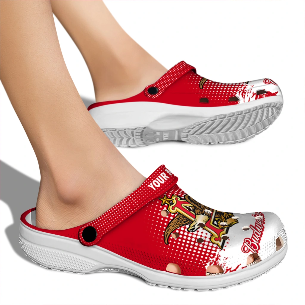 Personalized Budweiser Crowned Wings Red White Clogs