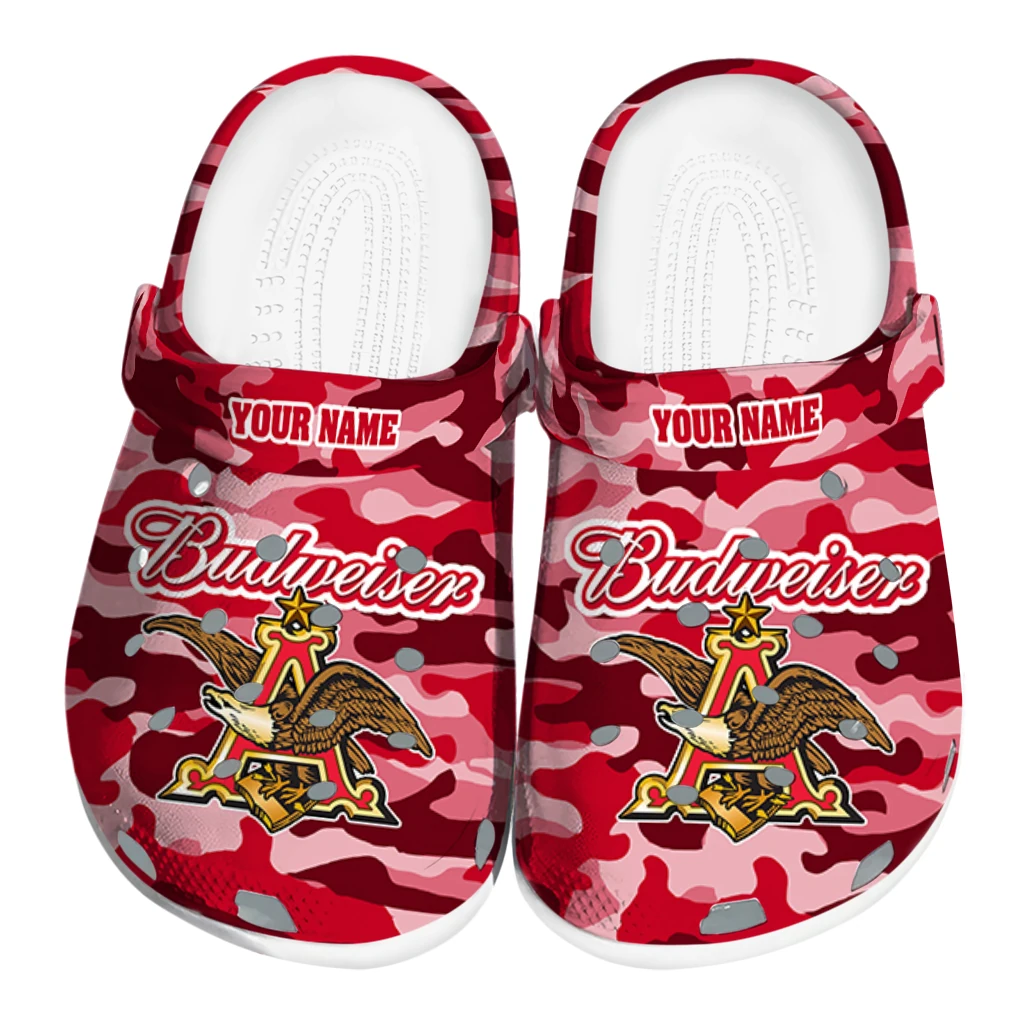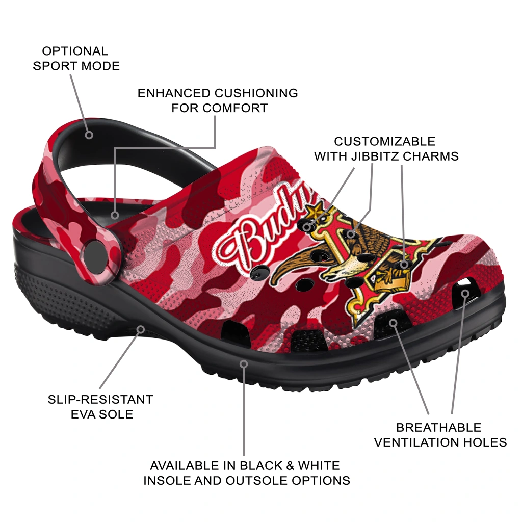 Personalized Budweiser Eagle Badge Red Pink Clogs