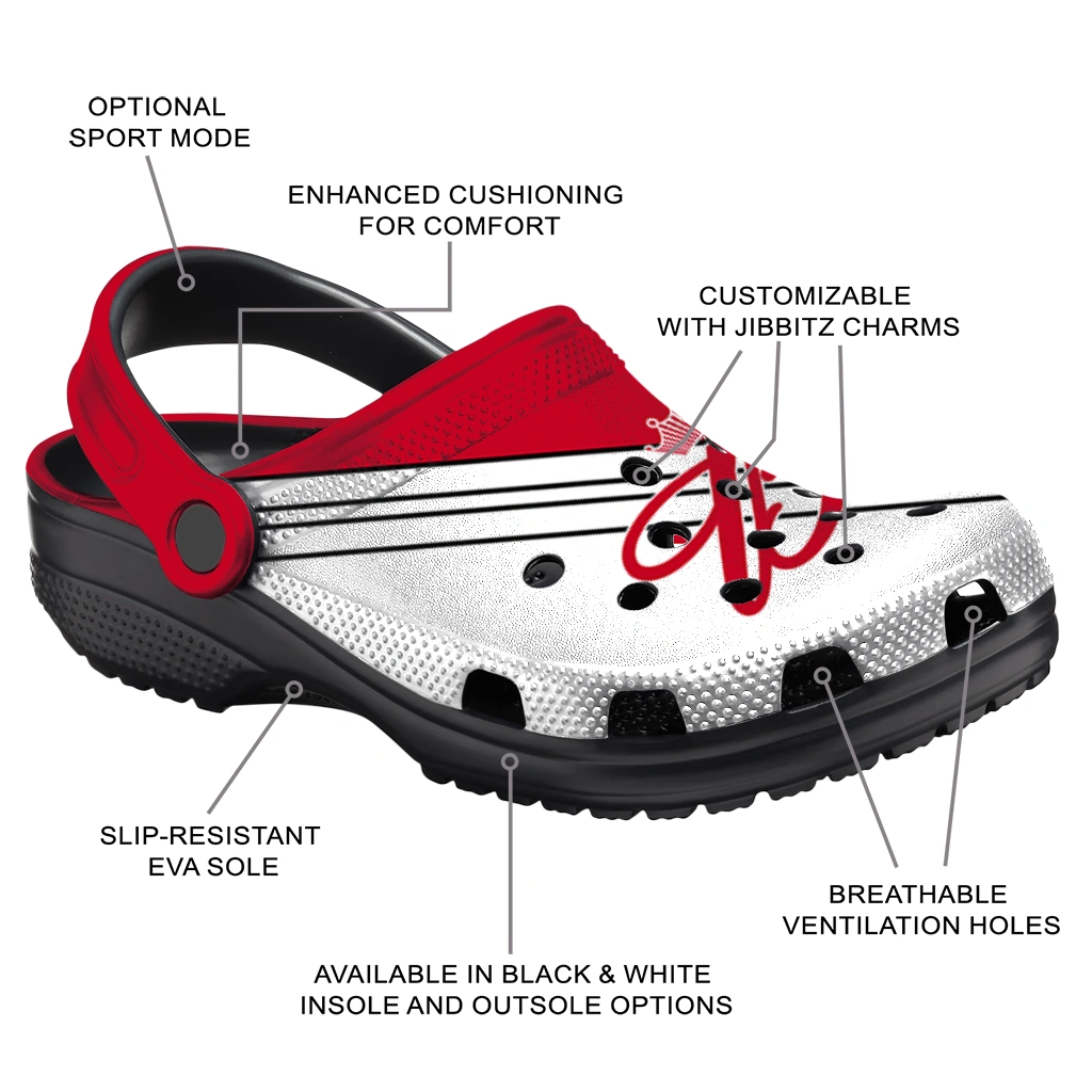 The Customized Budweiser Splat Centerpiece Red White Clogs from Hey Clogs slips on in seconds and keeps pace with your day – from slow mornings at home to city strolls and weekend getaways. Thoughtful design meets playful style with cheerful colors and prints that pop, adding personality to every step while delivering easy, breezy comfort and lightweight support wherever you wander. Want a signature touch? Customize yours with a name or initials for a one-of-one pair.