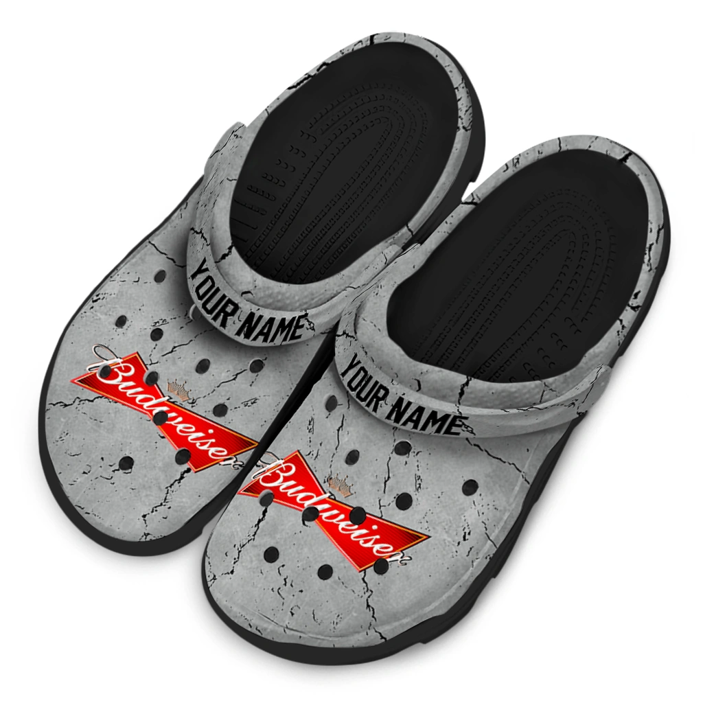 Personalized Budweiser Stone Bowtie Gray Red Clogs