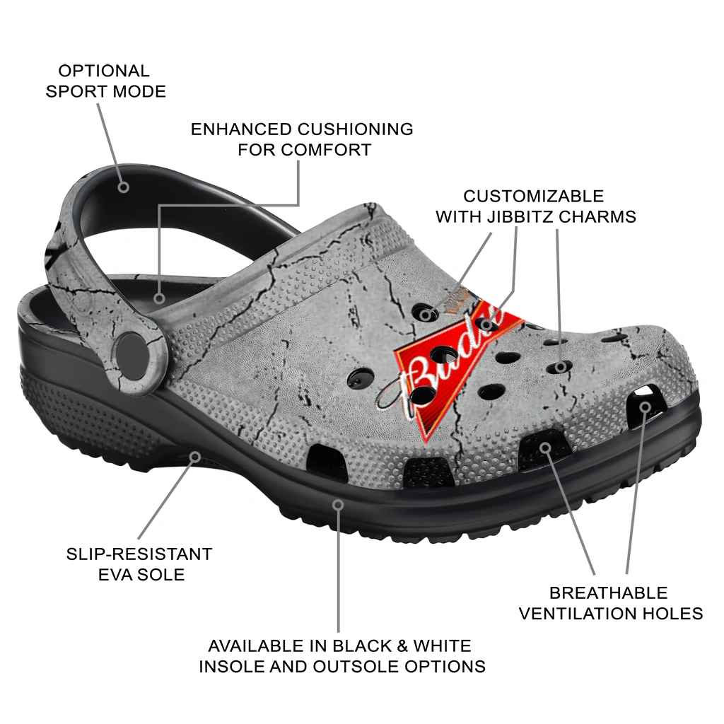 Can’t take your eyes off the Personalized Budweiser Stone Bowtie Gray Red Clogs? We get it. This pair mixes sun-bright prints with cloud-soft comfort in a silhouette that’s effortless to style and even easier to wear. Crafted from premium EVA, it’s ultra-light yet supportive, quick to dry after splashy moments, and steady underfoot thanks to an anti-slip sole.