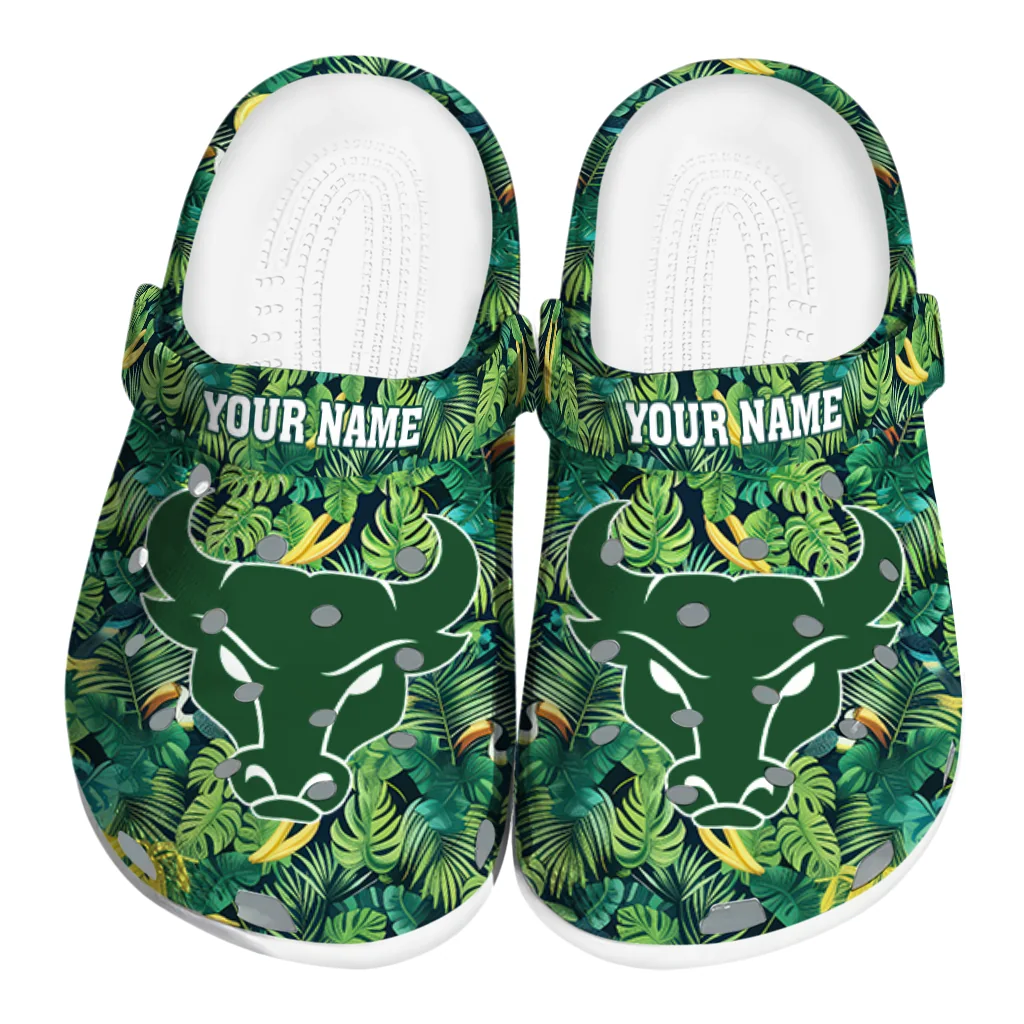 Personalized Buffalo Bulls Tropical Leaves Clogs