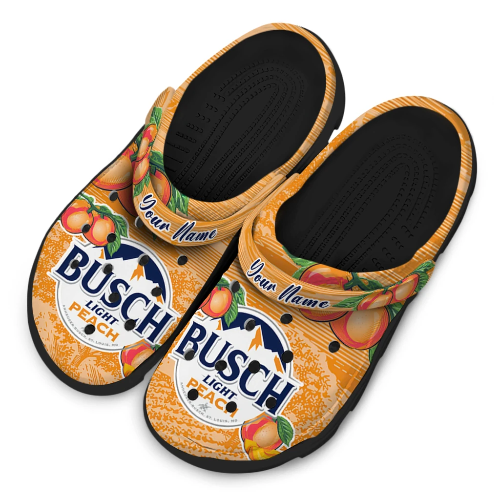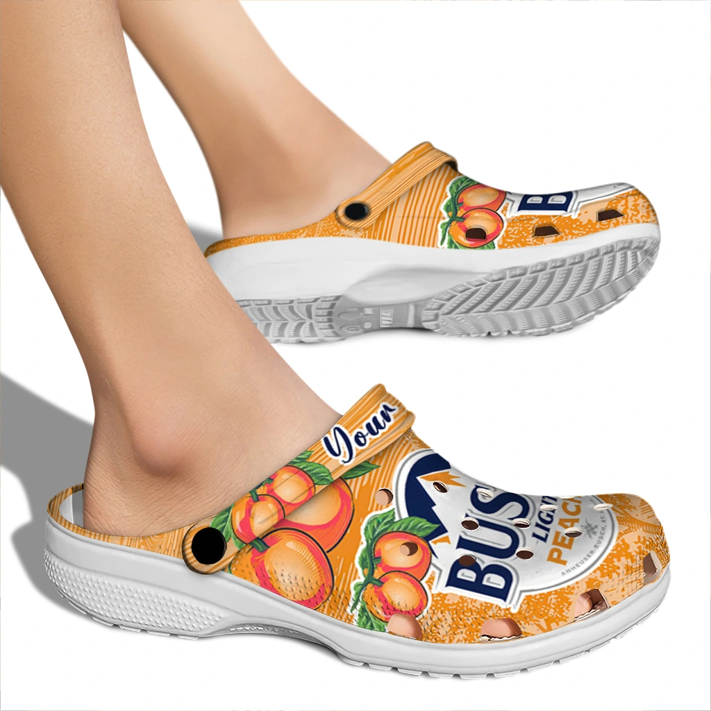 Personalized Busch Light Peach Pair Orange Green Clogs