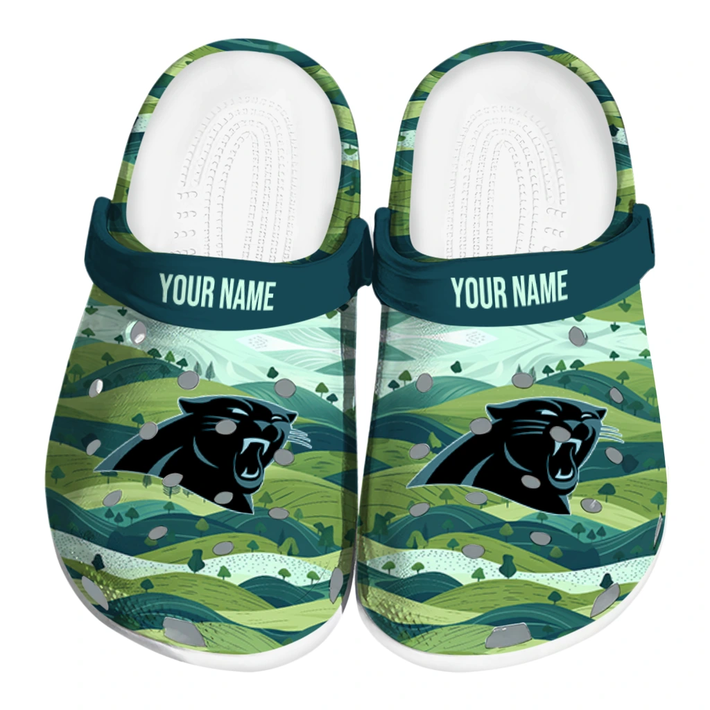 Your Clogs, Your Vibe, Your Name! Personalized Carolina Panthers Woods Forest Designs Clogs from Hey Clogs lets you take sport team-inspired style to a personal level! Featuring the bold colors you love, these featherlight clogs deliver unbeatable, all-day comfort. What a great way to make them truly yours: add your name to the heel strap! Perfect for gifting or treating yourself, these personalized clogs are a fun, spirited way to step out in comfort.