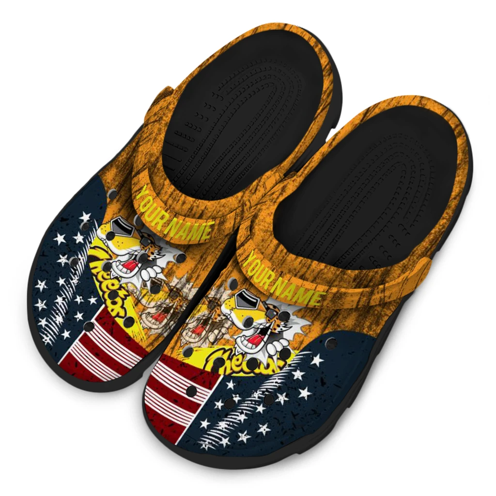 Personalized Cheetos Eagle Burst Orange Navy Clogs
