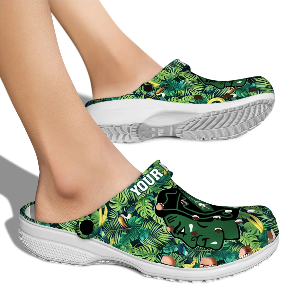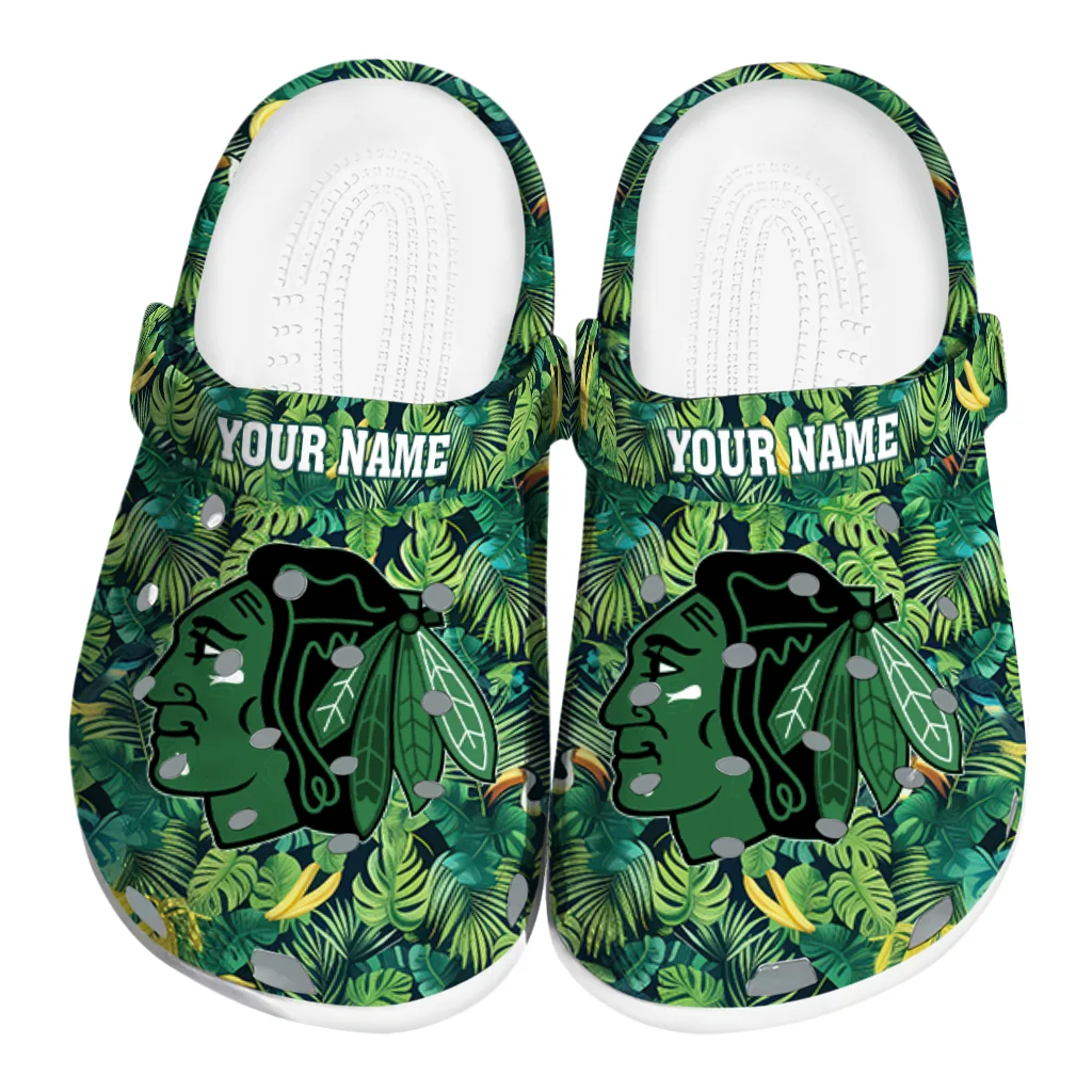 Personalized Chicago Blackhawks Tropical Leaves Clogs