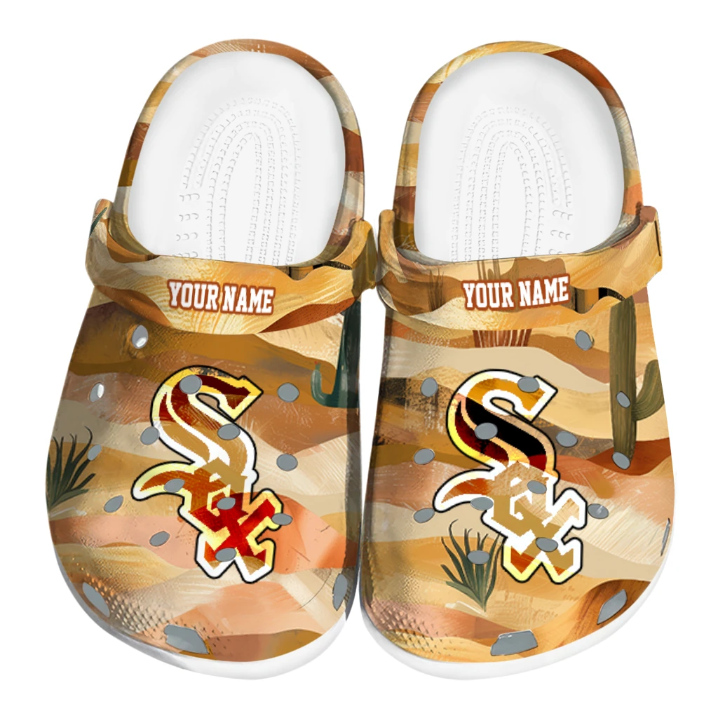 Your Clogs, Your Vibe, Your Name! Customized Chicago White Sox Desert Cactus Pattern Clogs from Hey Clogs lets you take sport team-inspired style to a personal level! Featuring the bold colors you love, these featherlight clogs deliver unbeatable, all-day comfort. What a great way to make them truly yours: add your name to the heel strap! Perfect for gifting or treating yourself, these personalized clogs are a fun, spirited way to step out in comfort.