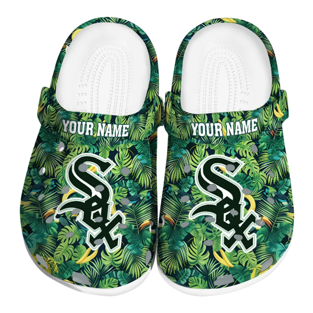 Personalized Chicago White Sox Tropical Leaves Clogs