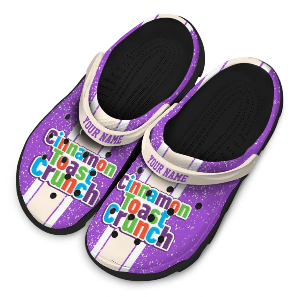 Personalized Cinamon Toast Crunch Logo Typography Purple Beige Clogs