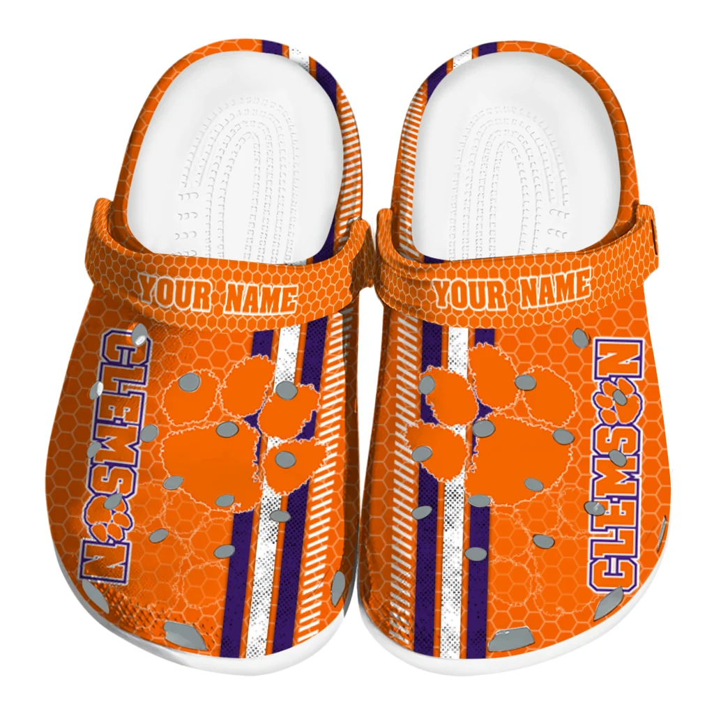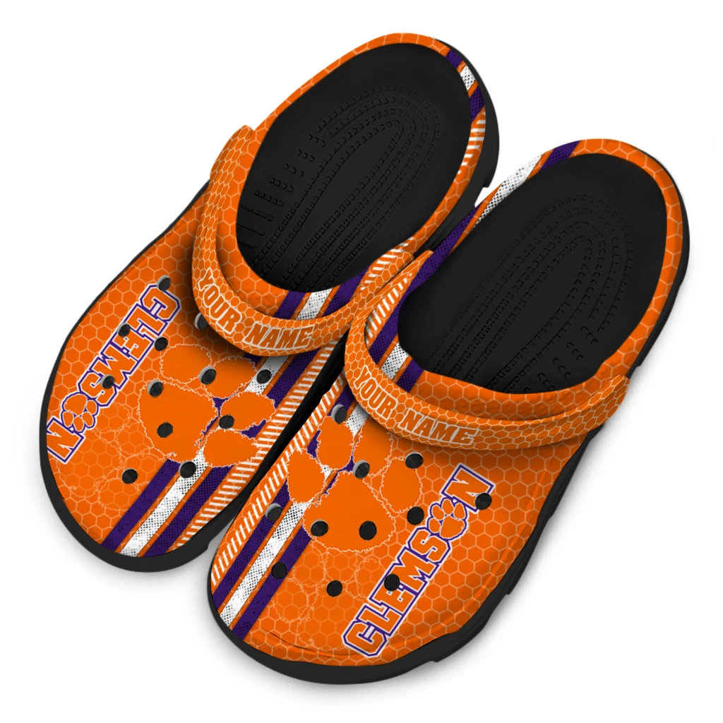 Personalized Clemson Tigers Contrasting Stripes Clogs