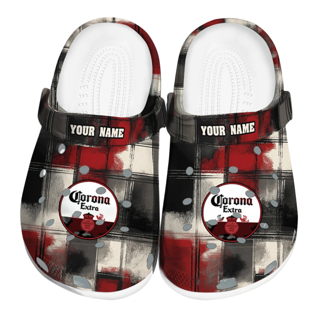 Personalized Corona Beer Corona Plaid Red Black Clogs