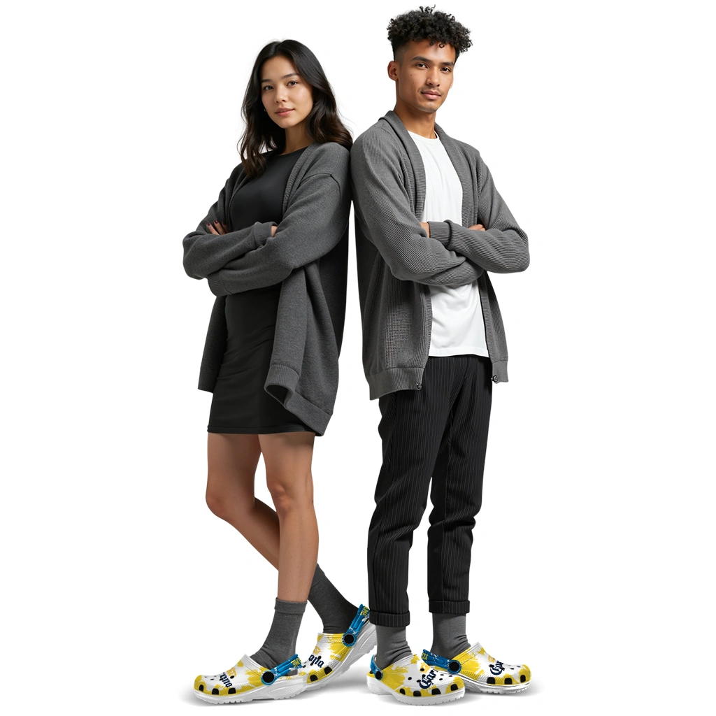 The Personalized Corona Beer Splash Logo Yellow White Clogs from Hey Clogs slips on in seconds and keeps pace with your day – from slow mornings at home to city strolls and weekend getaways. Thoughtful design meets playful style with cheerful colors and prints that pop, adding personality to every step while delivering easy, breezy comfort and lightweight support wherever you wander. Want a signature touch? Customize yours with a name or initials for a one-of-one pair.
