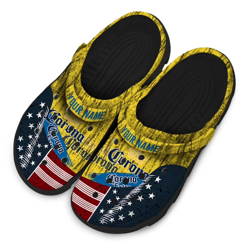 Personalized Corona Beer Wavy Distressed Effect Yellow Navy Clogs