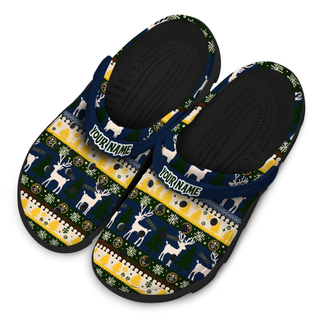 Your Clogs, Your Vibe, Your Name! Personalized Denver Nuggets Christmas Motif Clogs from Hey Clogs lets you take sport team-inspired style to a personal level! Featuring the bold colors you love, these featherlight clogs deliver unbeatable, all-day comfort. What a great way to make them truly yours: add your name to the heel strap! Perfect for gifting or treating yourself, these personalized clogs are a fun, spirited way to step out in comfort.