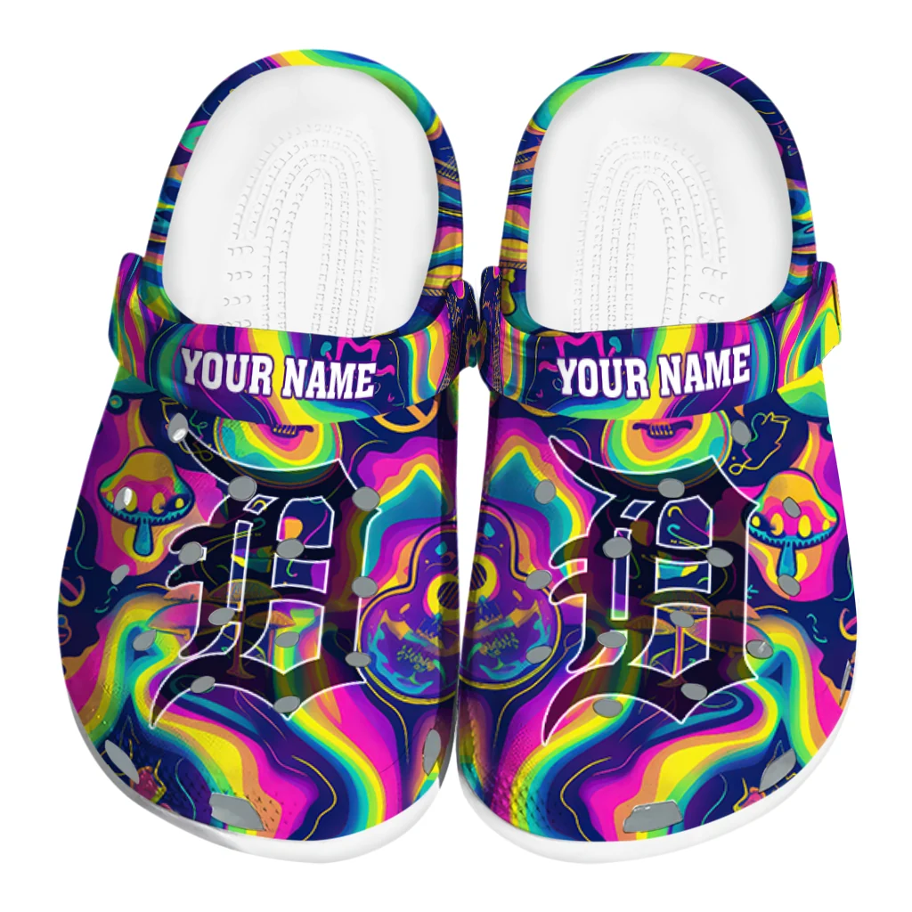 Personalized Detroit Tigers Swirling Mushrooms Clogs
