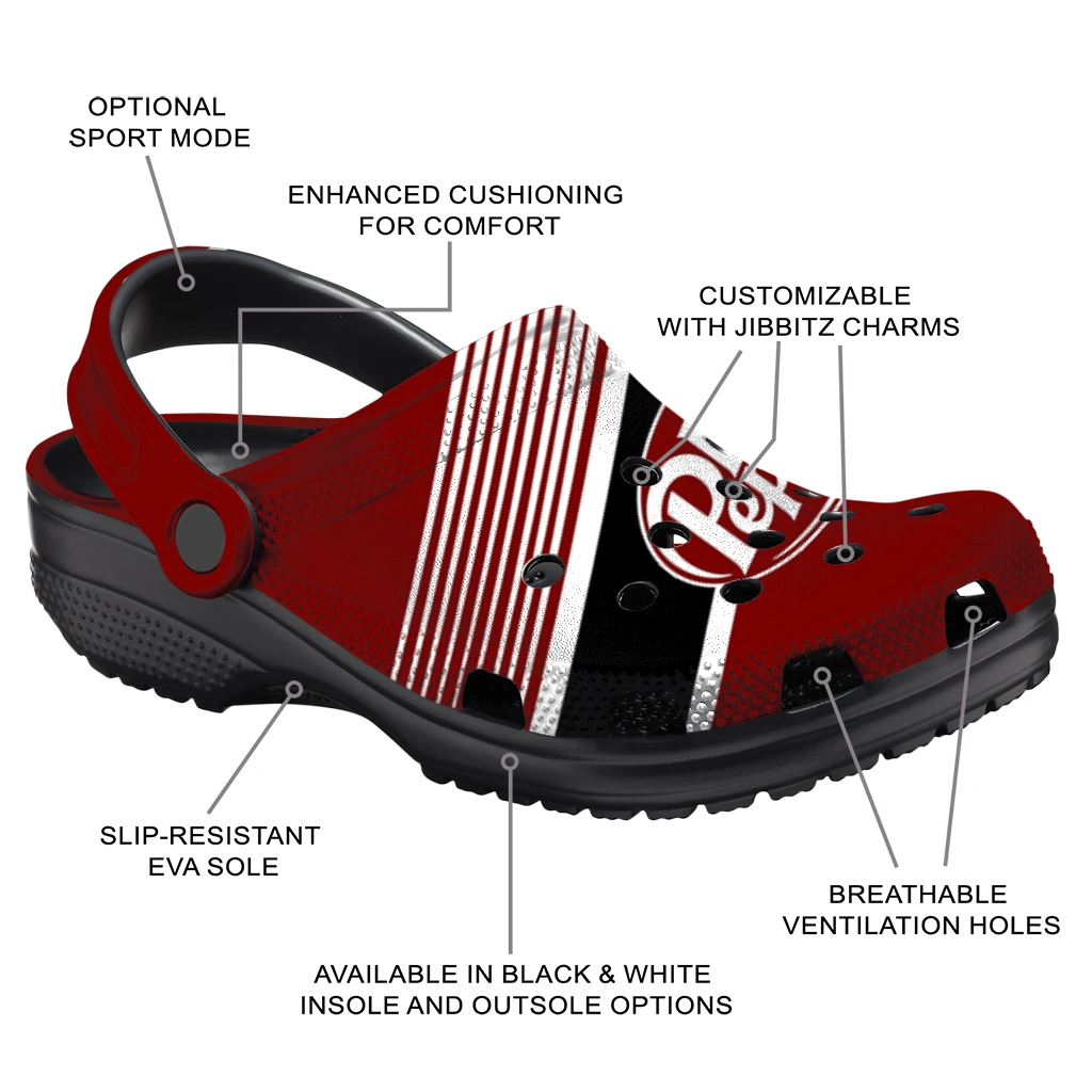 The Dr Pepper Logo Stars Red Black Clogs from Hey Clogs slips on in seconds and keeps pace with your day, from slow mornings at home to city strolls and weekend getaways. Thoughtful design meets playful style with cheerful colors and prints that pop, adding personality to every step while delivering easy, breezy comfort and lightweight support wherever you wander.