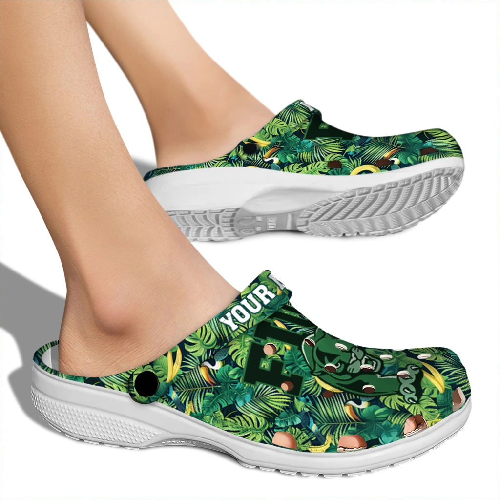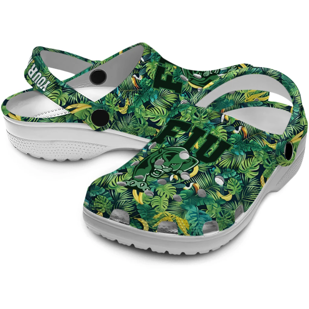 Your Clogs, Your Vibe, Your Name! Personalized FIU Panthers Tropical Leaves Clogs from Hey Clogs lets you take sport team-inspired style to a personal level! Featuring the bold colors you love, these featherlight clogs deliver unbeatable, all-day comfort. What a great way to make them truly yours: add your name to the heel strap! Perfect for gifting or treating yourself, these personalized clogs are a fun, spirited way to step out in comfort.