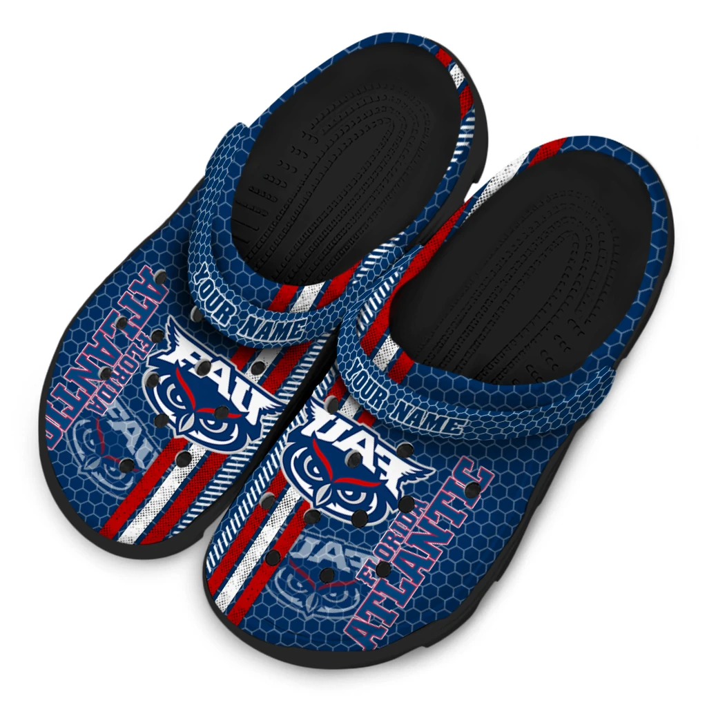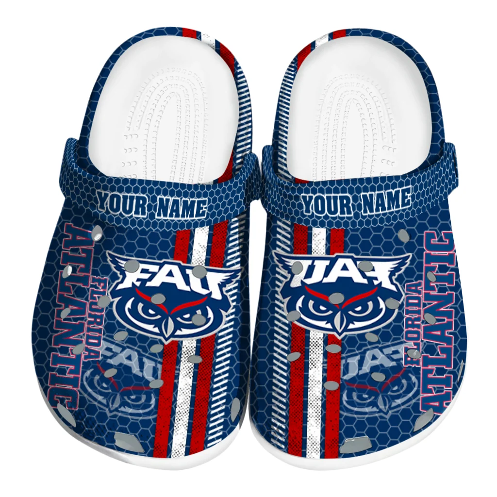 Personalized Florida Atlantic Owls Contrasting Stripes Clogs