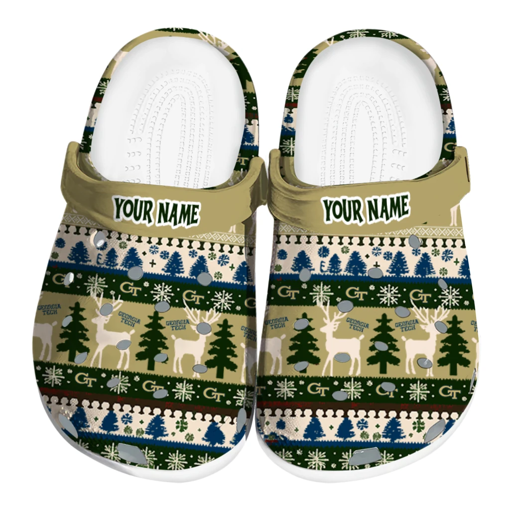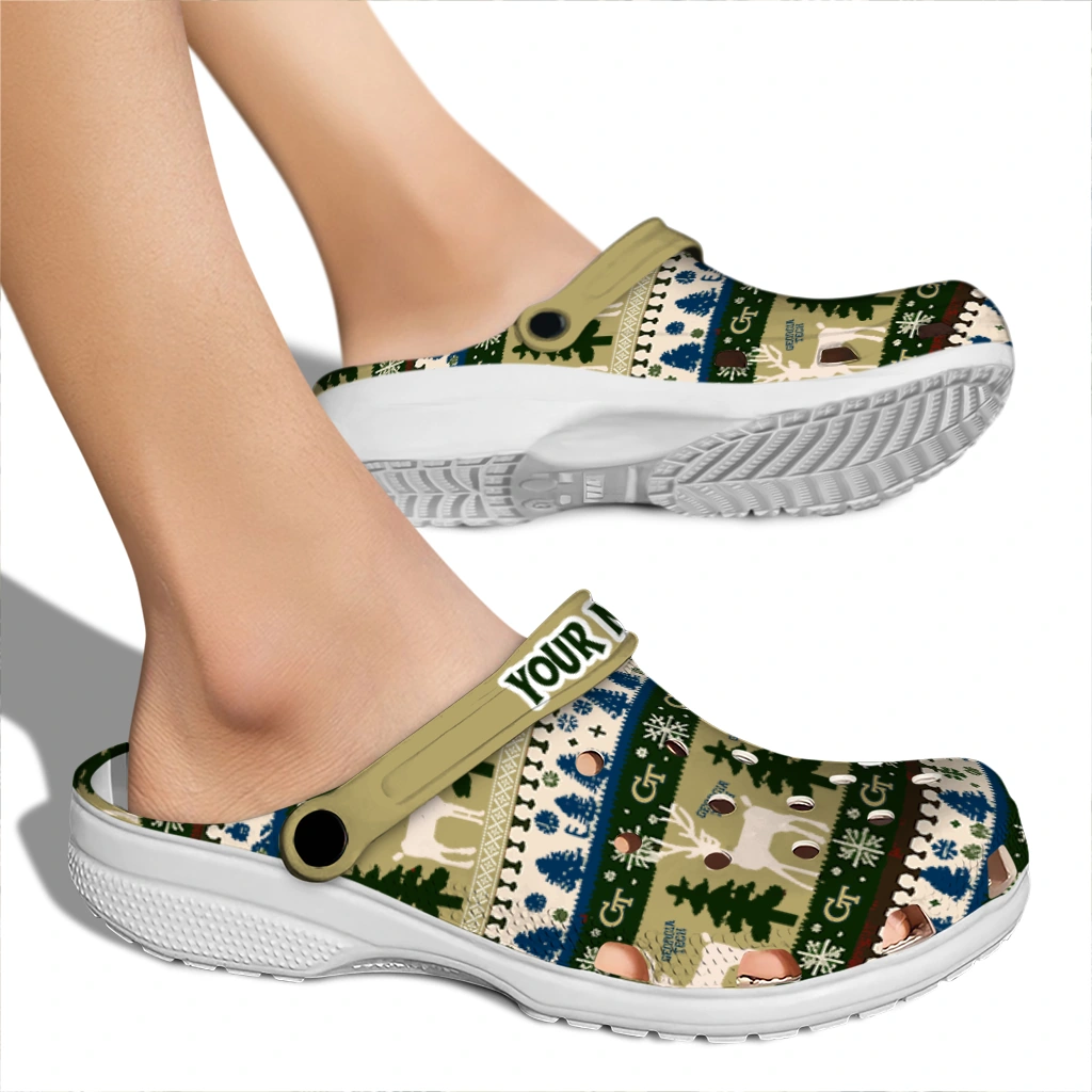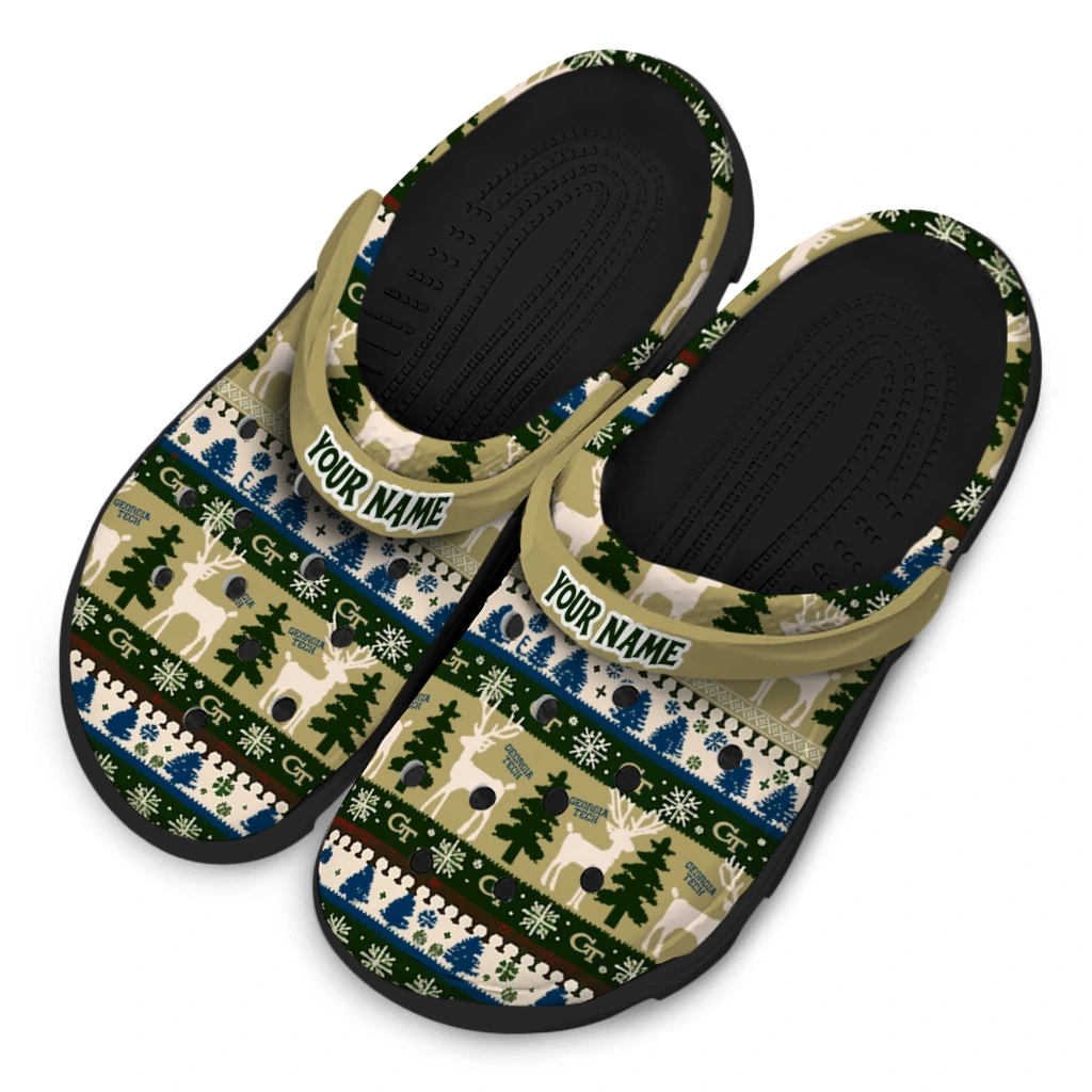 Personalized Georgia Tech Yellow Jackets Christmas Motif Clogs