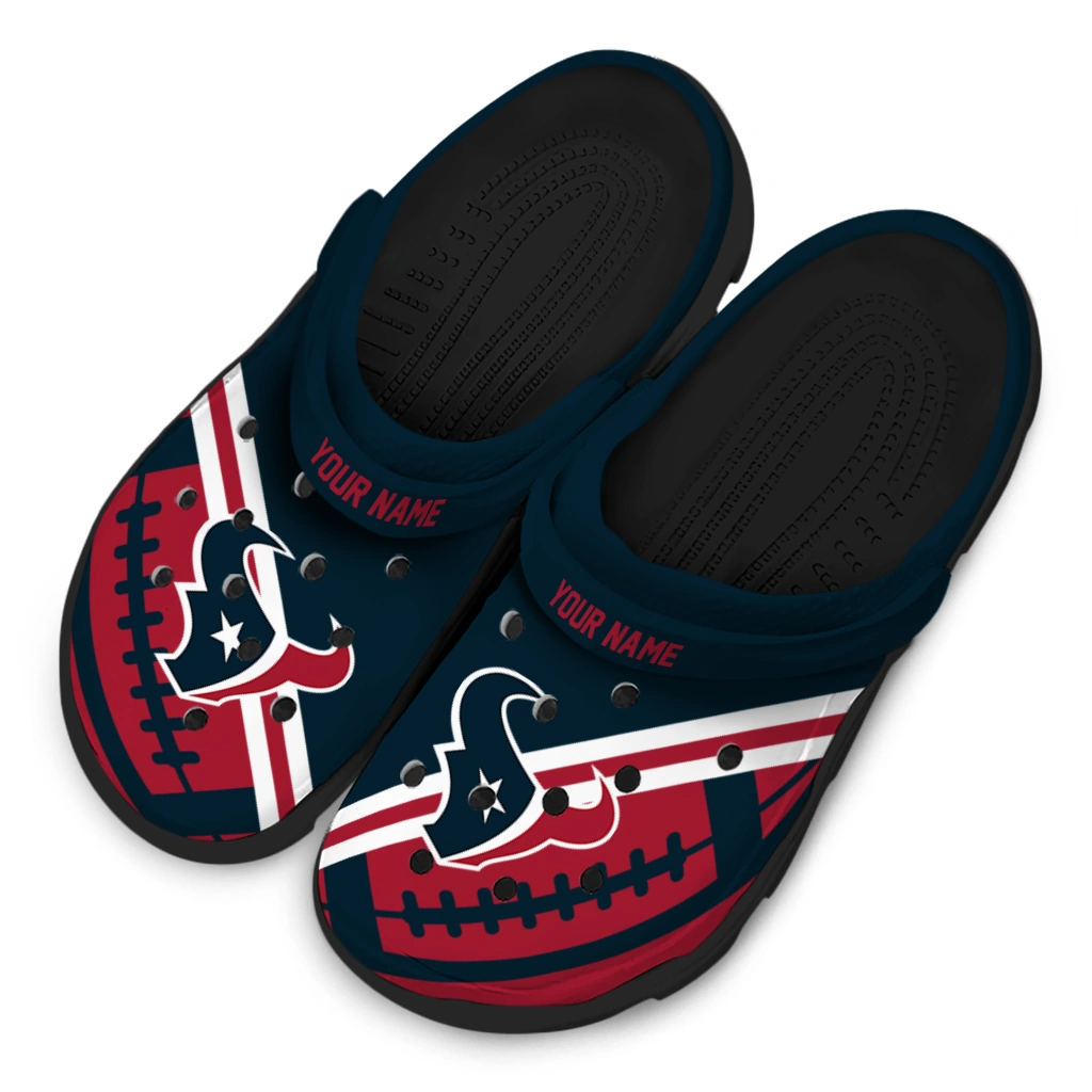 Your Clogs, Your Vibe, Your Name! Personalized Houston Texans Football Motif Clogs from Hey Clogs lets you take sport team-inspired style to a personal level! Featuring the bold colors you love, these featherlight clogs deliver unbeatable, all-day comfort. What a great way to make them truly yours: add your name to the heel strap! Perfect for gifting or treating yourself, these personalized clogs are a fun, spirited way to step out in comfort.