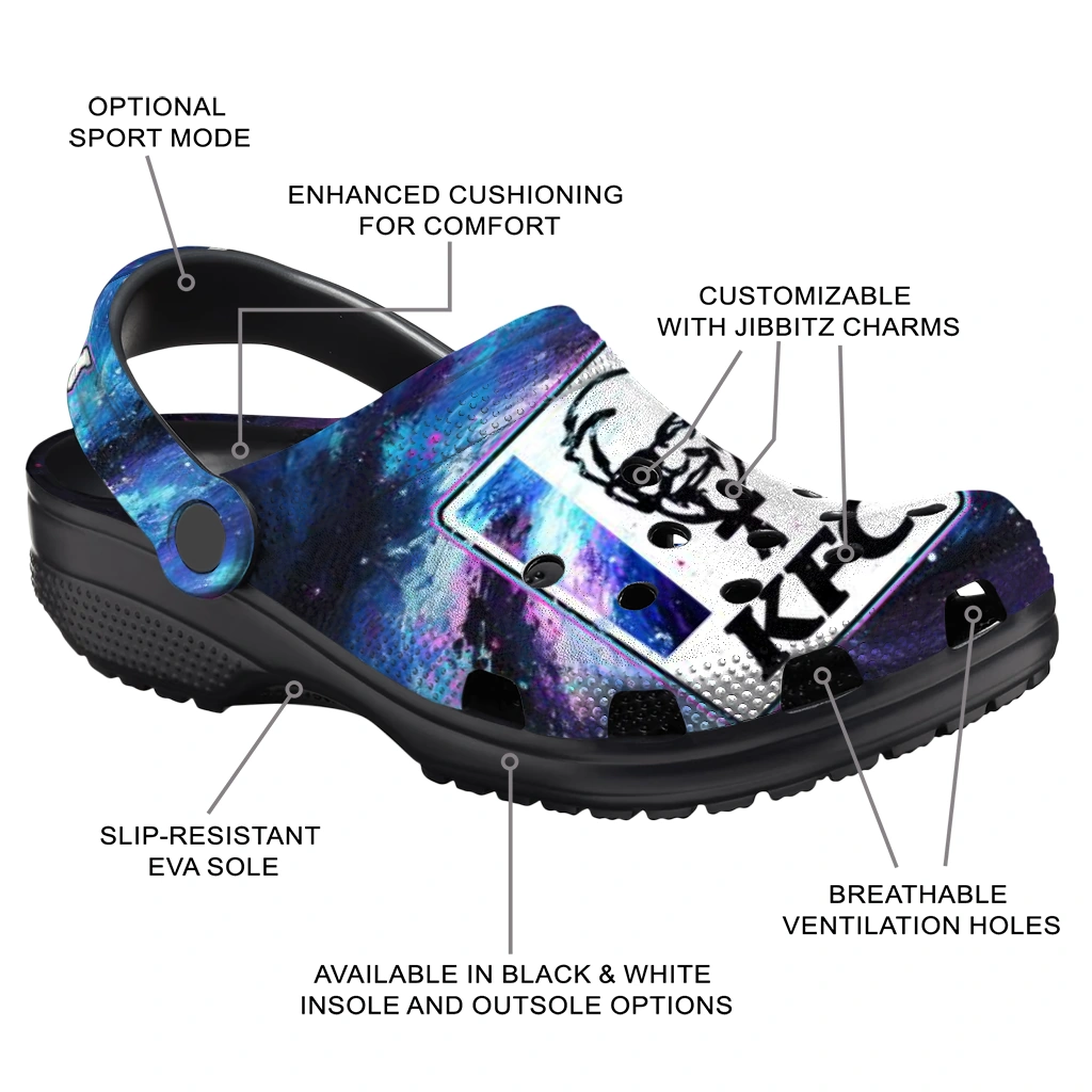Personalized KFC Cosmic Logo Purple Blue Clogs