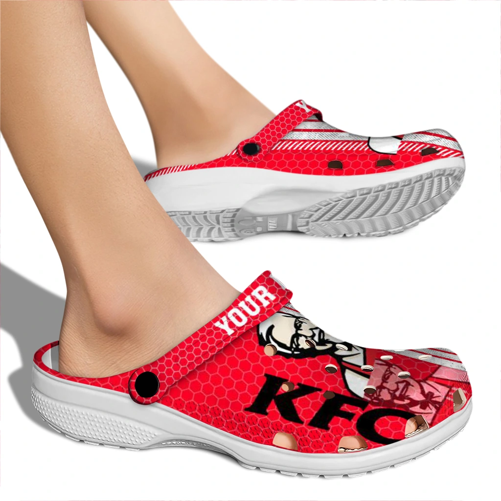 The Custom KFC Branding Red Black Clogs from Hey Clogs slips on in seconds and keeps pace with your day – from slow mornings at home to city strolls and weekend getaways. Thoughtful design meets playful style with cheerful colors and prints that pop, adding personality to every step while delivering easy, breezy comfort and lightweight support wherever you wander. Want a signature touch? Customize yours with a name or initials for a one-of-one pair.