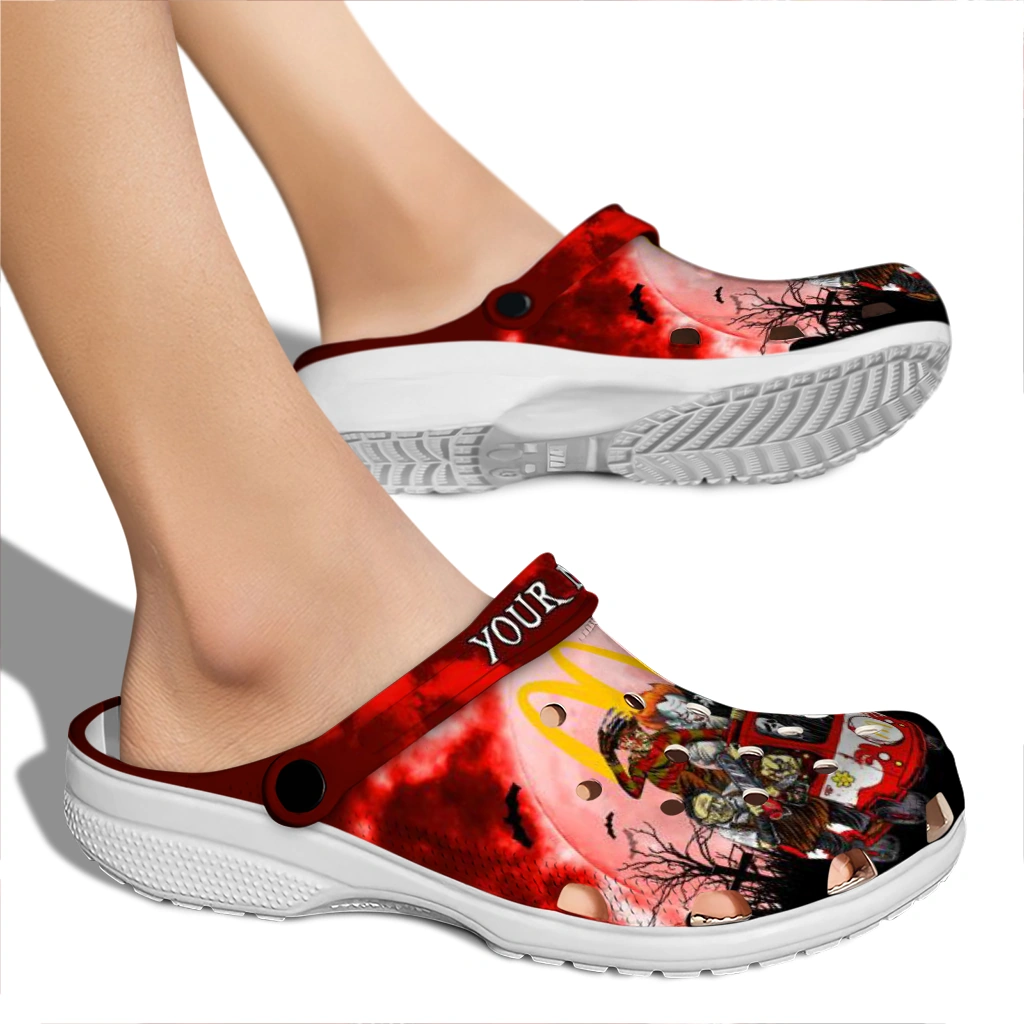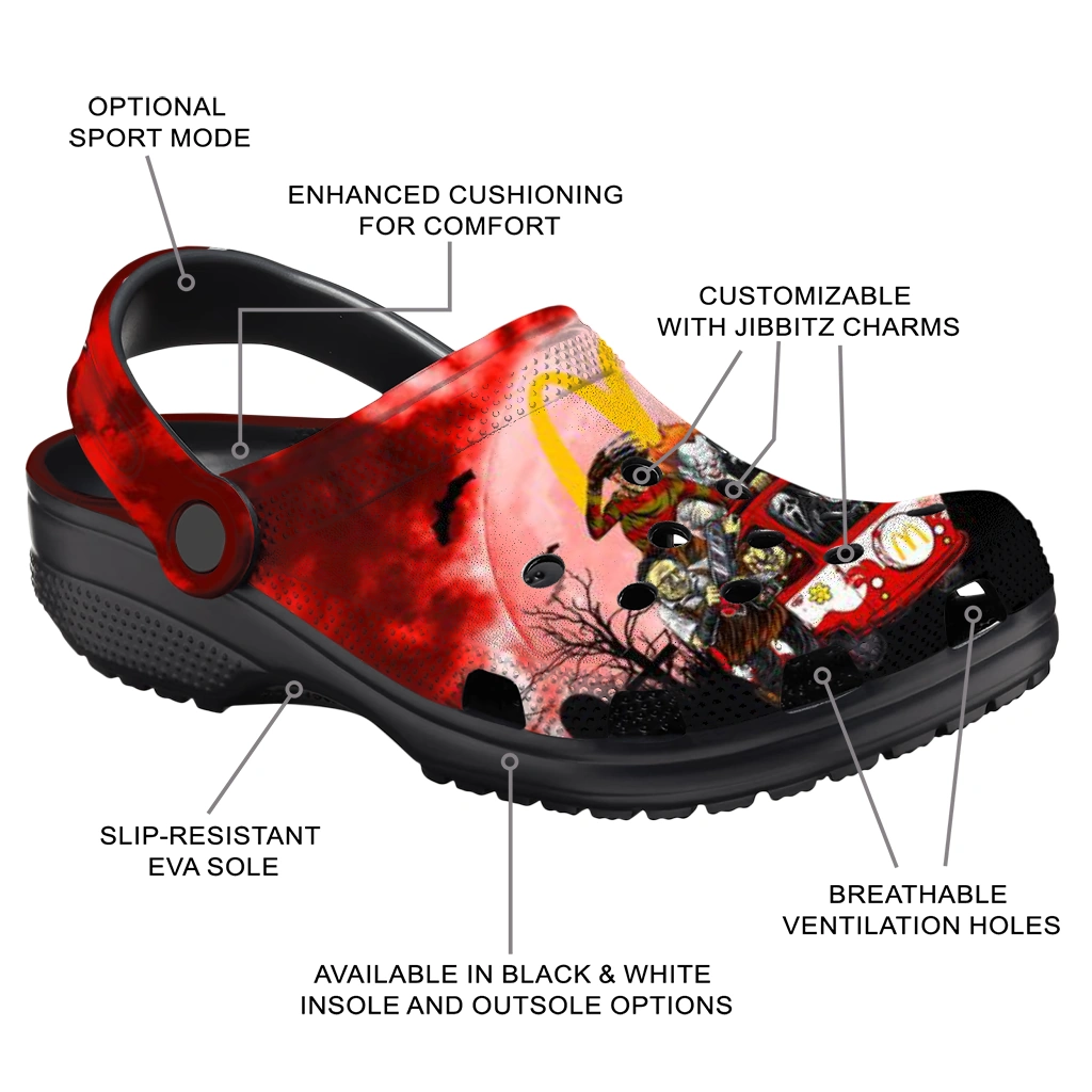 The Personalized McDonald’s Evil Masks Red Black Clogs from Hey Clogs slips on in seconds and keeps pace with your day – from slow mornings at home to city strolls and weekend getaways. Thoughtful design meets playful style with cheerful colors and prints that pop, adding personality to every step while delivering easy, breezy comfort and lightweight support wherever you wander. Want a signature touch? Customize yours with a name or initials for a one-of-one pair.