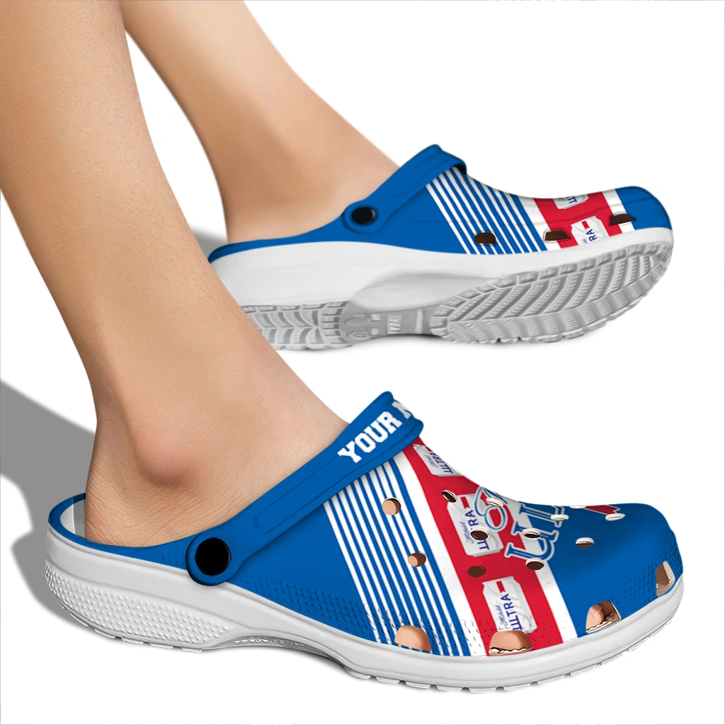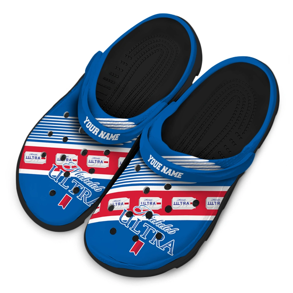 Personalized Michelob Ultra Banner Stripe Blue Red Clogs