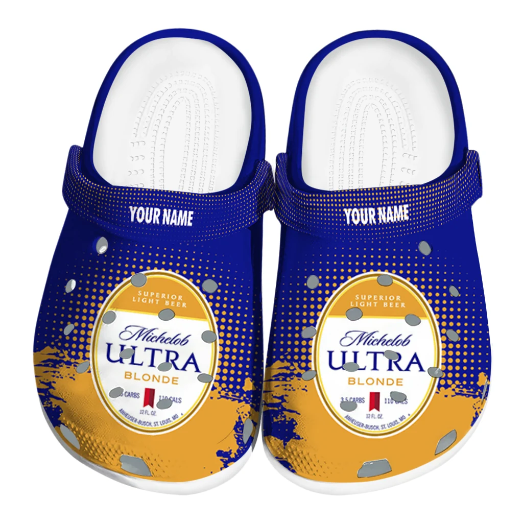 Personalized Michelob Ultra Blonde Crest Blue Yellow Clogs