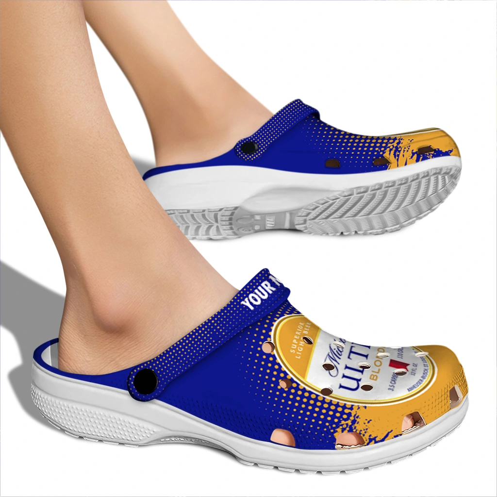 Can’t take your eyes off the Personalized Michelob Ultra Blonde Crest Blue Yellow Clogs? We get it. This pair mixes sun-bright prints with cloud-soft comfort in a silhouette that’s effortless to style and even easier to wear. Crafted from premium EVA, it’s ultra-light yet supportive, quick to dry after splashy moments, and steady underfoot thanks to an anti-slip sole.