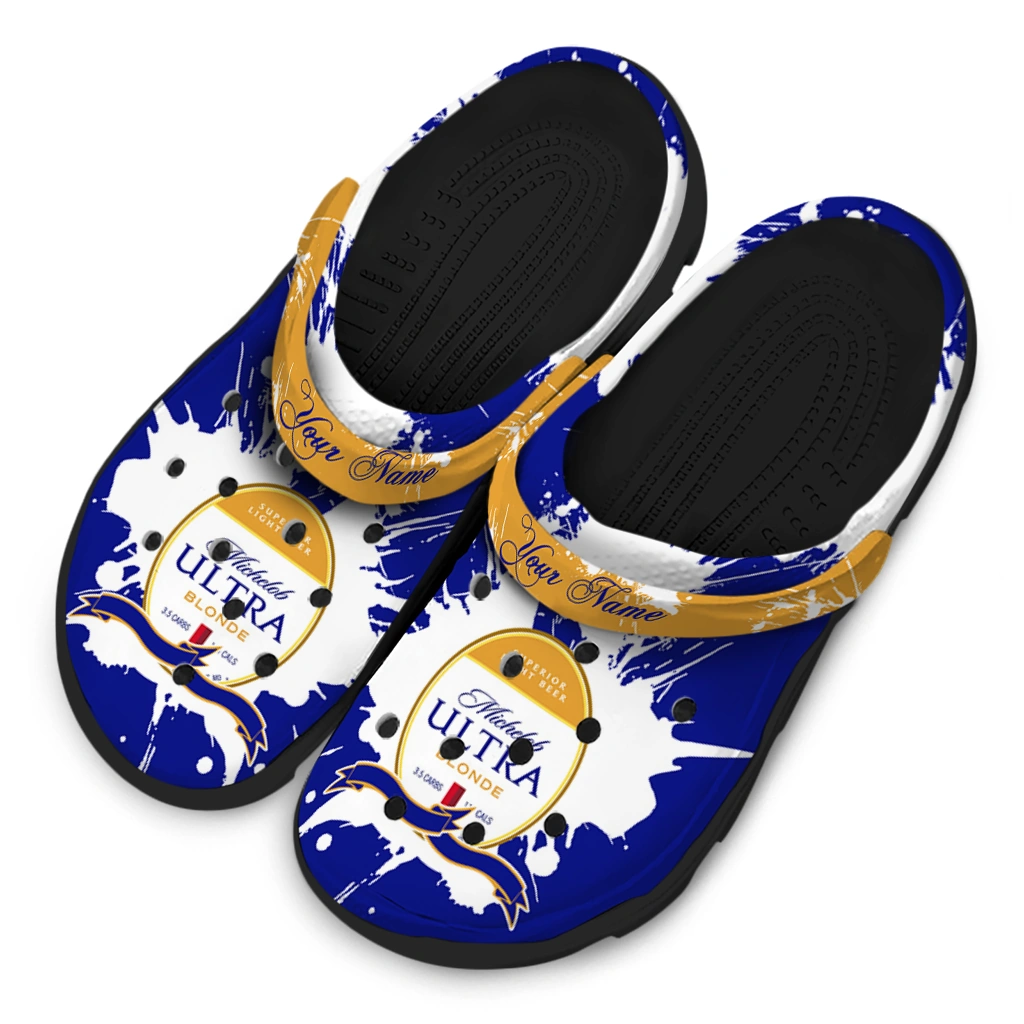 Personalized Michelob Ultra Label Blue White Clogs