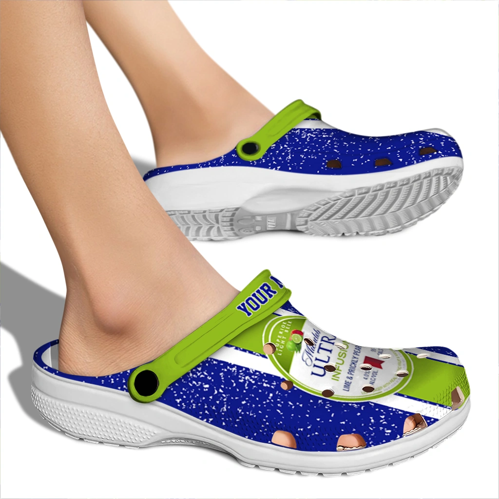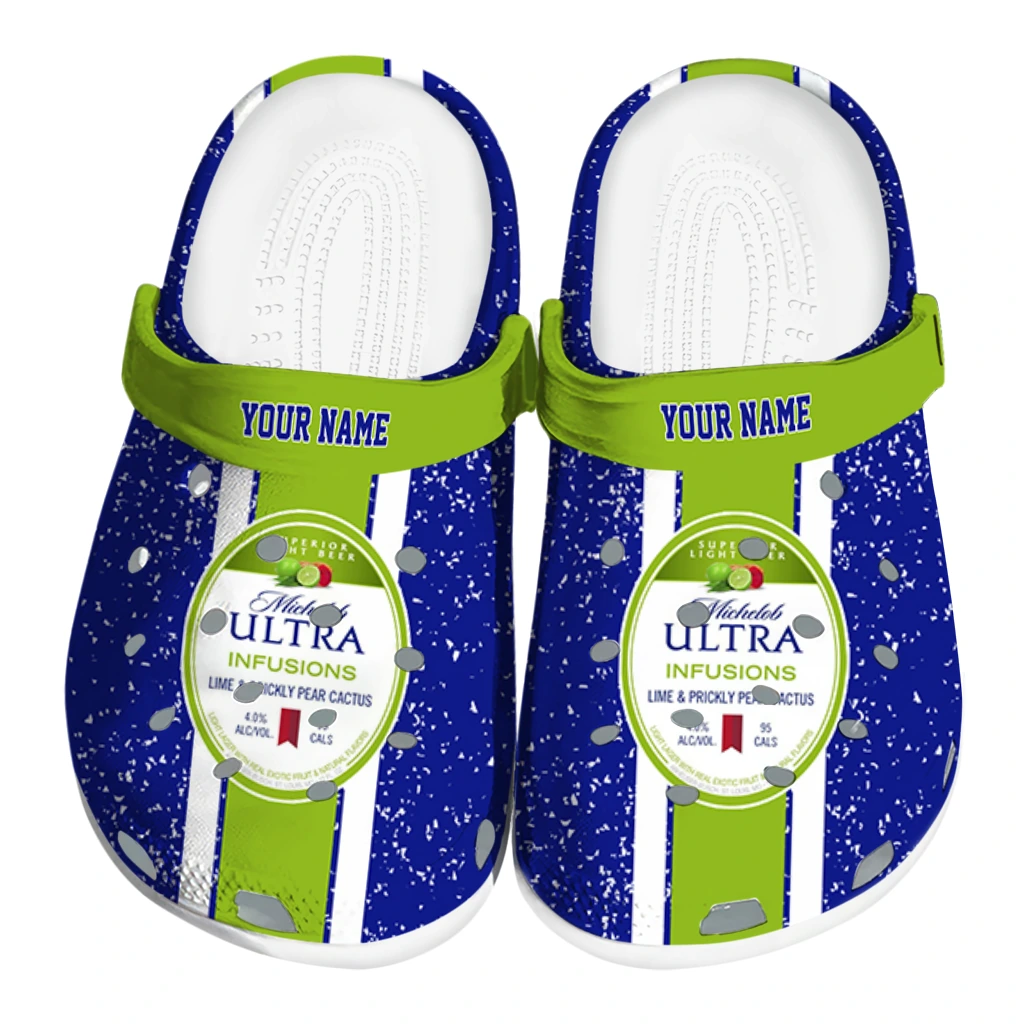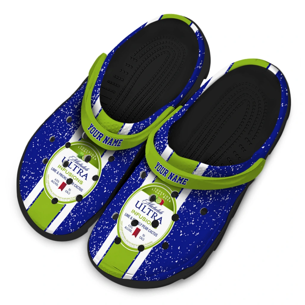 Personalized Michelob Ultra Name Panel Blue Green Clogs