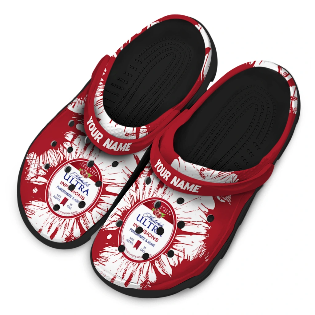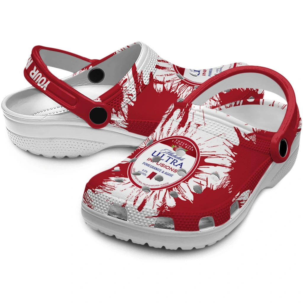 Personalized Michelob Ultra Paint Splash Red White Clogs