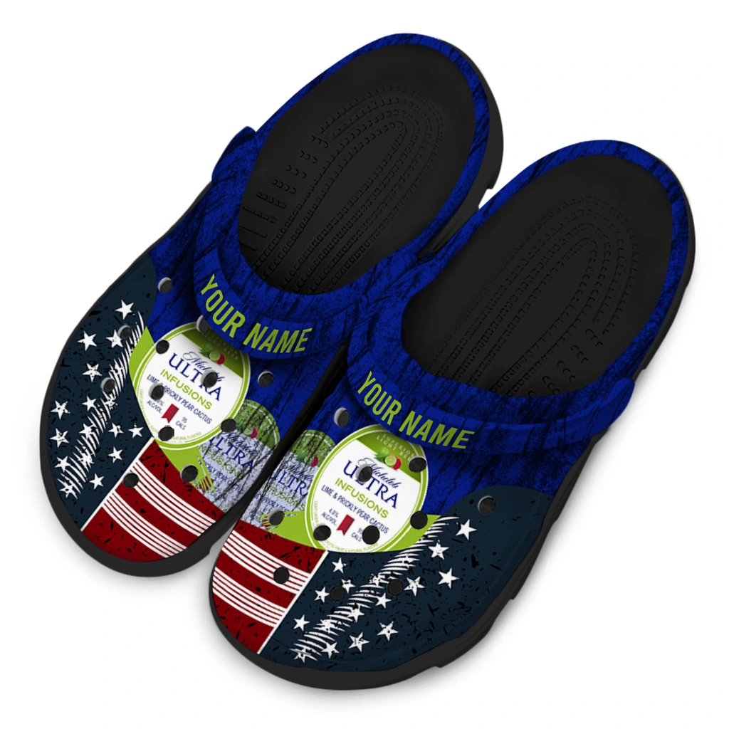 The Customized Michelob Ultra Text Blue Red Clogs from Hey Clogs slips on in seconds and keeps pace with your day – from slow mornings at home to city strolls and weekend getaways. Thoughtful design meets playful style with cheerful colors and prints that pop, adding personality to every step while delivering easy, breezy comfort and lightweight support wherever you wander. Want a signature touch? Customize yours with a name or initials for a one-of-one pair.